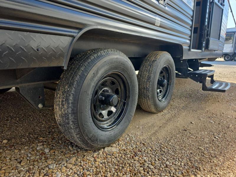 The Cherokee Wolf Den travel trailers by Forest River are lightweight for easy towing, while still including the camping essentials you're looking for! There are a variety of floorplans to choose from, including bunkhouse models, couple's units, and even all-electric floorplans! You'll find a tub/shower in each travel trailer, a comfortable queen bed, seating spaces to relax on, and kitchen amenities that will make your space feel more like home. There are storage spaces inside for your belongings plus outdoor storage for fishing gear, camp chairs, tools, and more! Start a new adventure today in a Cherokee Wolf Den travel trailer today!