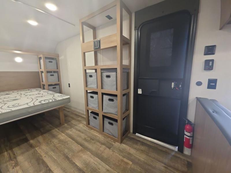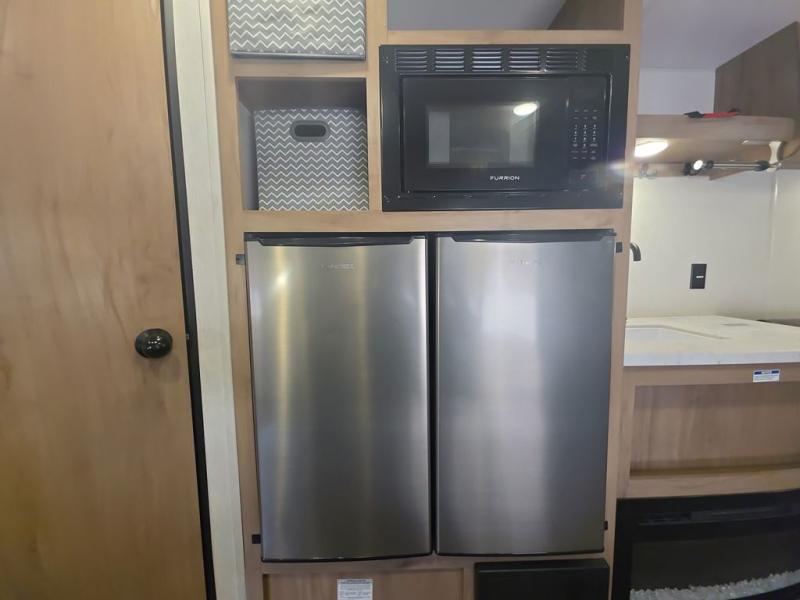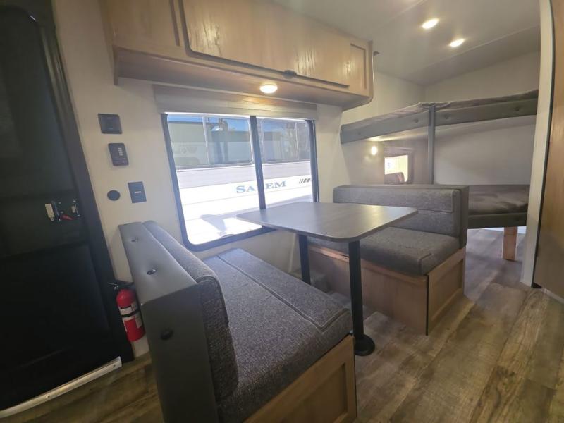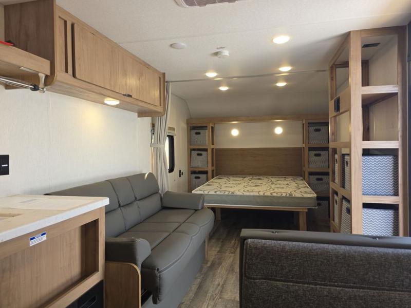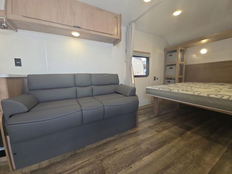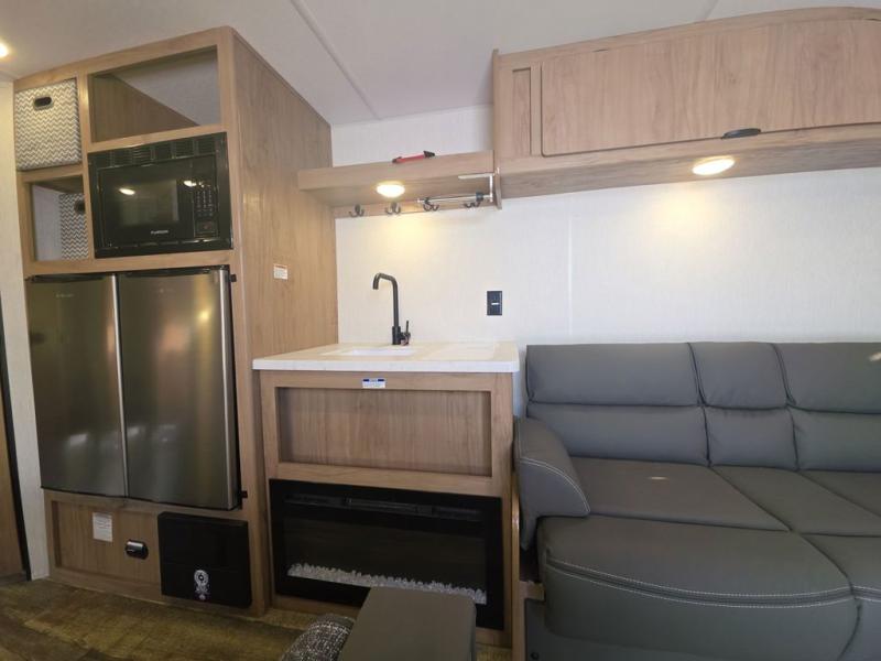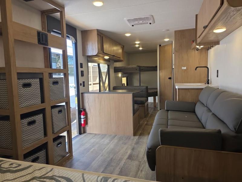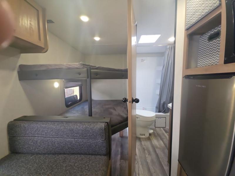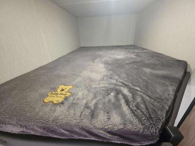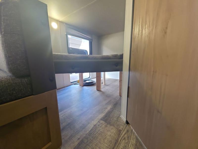 Enjoy family adventures in this all-electric bunk model which features sleeping for eight to ten depending on size with a queen bed up front, double bed bunks in the rear curbside corner, and you could even convert the booth dinette and sofa to sleep more. Inside, you will find ample storage with overhead cabinets and a large shelf above the queen bed, plus more shelves next to the entry door, as well as a pantry and storage on either side of the bed. You will appreciate the full bath with tub/shower, toilet, and sink so you can skip the campground facilities. On the outside, you will also find a 12' awning for added outdoor living, and outside storage for your camping gear, plus more!