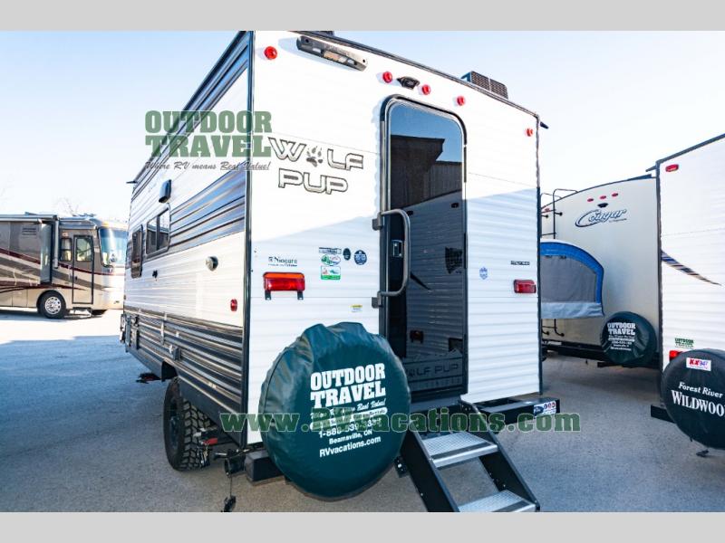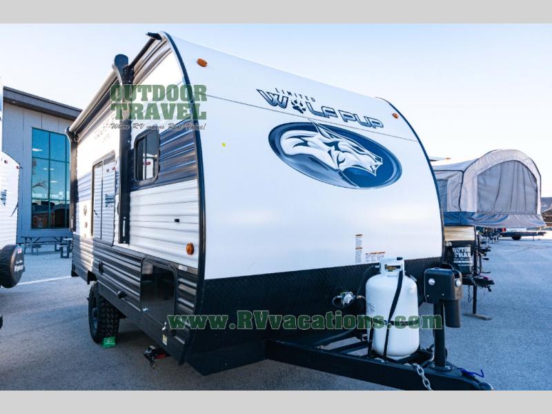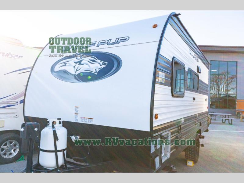 Each one of these Forest River Cherokee Wolf Pup travel trailers are lightweight and easy to tow! They are fully self contained with ample tank capacities, an abundance of storage space, and filled with at home amenities. The aerodynamic smooth radius front profile, the Power Gear frame technology, and the space saver rail design make them easier to maneuver. You will also appreciate the seamless roofing membrane with heat reflectivity to keep the sun from making your unit a hot box. The tongue and groove plywood flooring will hold up for years of fun and the USB charging stations help to keep your electronics at 100% while you're away. Come find the best model for you today!