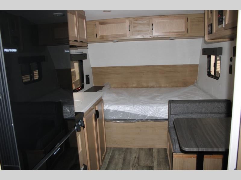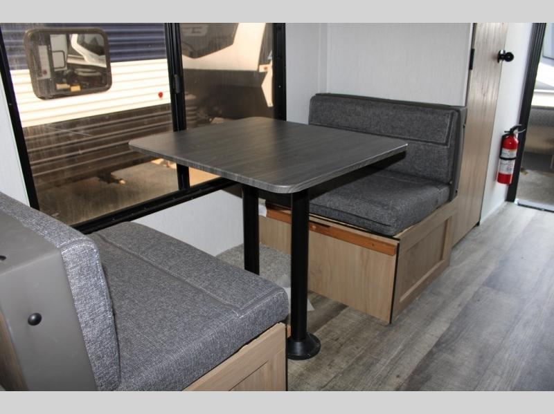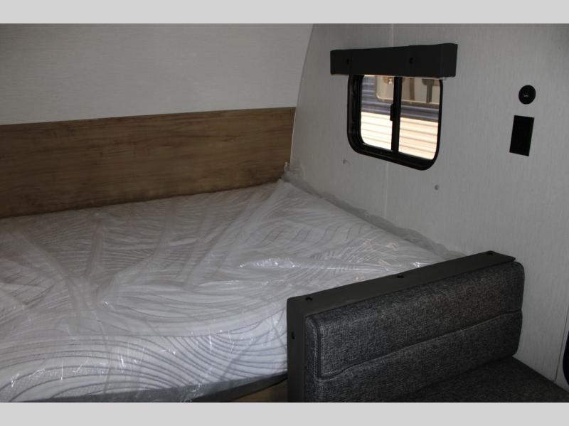 There are lots of features packed into this 19' travel trailer! The rear entry design creates a split bathroom for one person to use the private toilet while another freshens up in the private shower. You can prepare your best home cooked meals with the high output cooktop, the 11 cu. ft. 12V high efficiency residential refrigerator, and a sink to make clean up easier, plus you can comfortably enjoy your meals at the booth dinette with a TV mount location. The front queen bed provides a comfortable place to lay your head at night. Store your outdoor gear in the outside storage area, rinse the mud off your feet with the outside shower, and watch the big game outdoors with the outside TV mount!