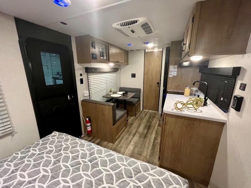 Each one of these Forest River Cherokee Wolf Pup travel trailers are lightweight and easy to tow! They are fully self contained with ample tank capacities, an abundance of storage space, and filled with at home amenities. The aerodynamic smooth radius front profile, the Power Gear frame technology, and the space saver rail design make them easier to maneuver. You will also appreciate the seamless roofing membrane with heat reflectivity to keep the sun from making your unit a hot box. The tongue and groove plywood flooring will hold up for years of fun and the USB charging stations help to keep your electronics at 100% while you're away. Come find the best model for you today!