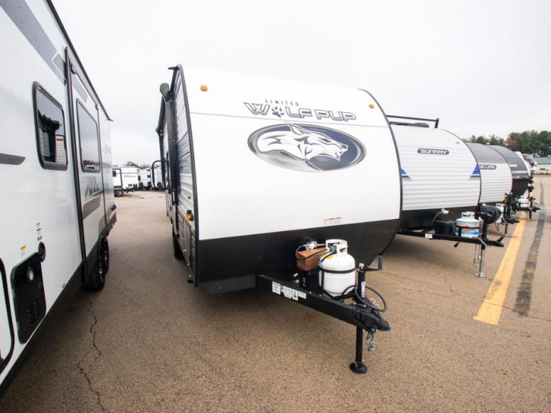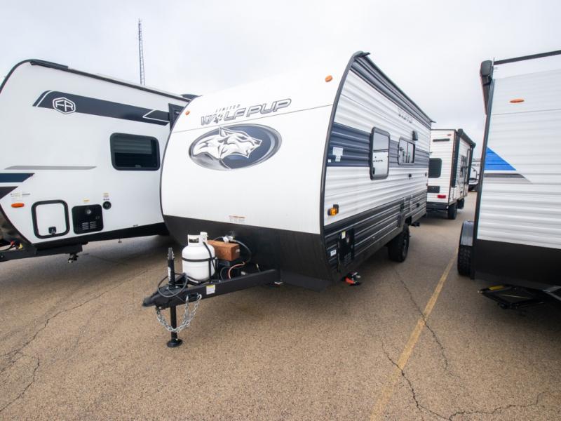 Each one of these Forest River Cherokee Wolf Pup travel trailers are lightweight and easy to tow! They are fully self contained with ample tank capacities, an abundance of storage space, and filled with at home amenities. The aerodynamic smooth radius front profile, the Power Gear frame technology, and the space saver rail design make them easier to maneuver. You will also appreciate the seamless roofing membrane with heat reflectivity to keep the sun from making your unit a hot box. The tongue and groove plywood flooring will hold up for years of fun and the USB charging stations help to keep your electronics at 100% while you're away. Come find the best model for you today!