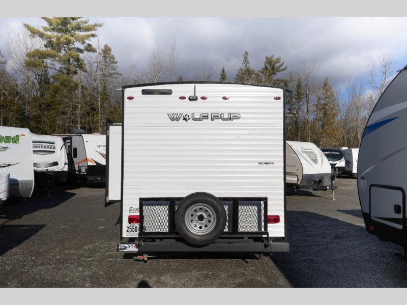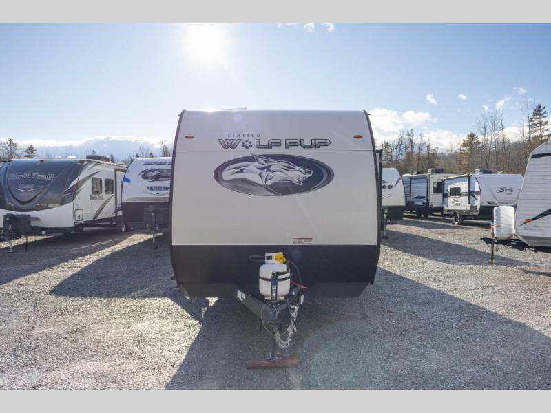 Each one of these Forest River Cherokee Wolf Pup travel trailers are lightweight and easy to tow! They are fully self contained with ample tank capacities, an abundance of storage space, and filled with at home amenities. The aerodynamic smooth radius front profile, the Power Gear frame technology, and the space saver rail design make them easier to maneuver. You will also appreciate the seamless roofing membrane with heat reflectivity to keep the sun from making your unit a hot box. The tongue and groove plywood flooring will hold up for years of fun and the USB charging stations help to keep your electronics at 100% while you're away. Come find the best model for you today!