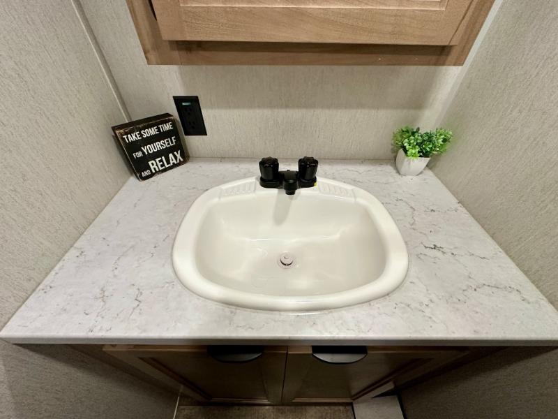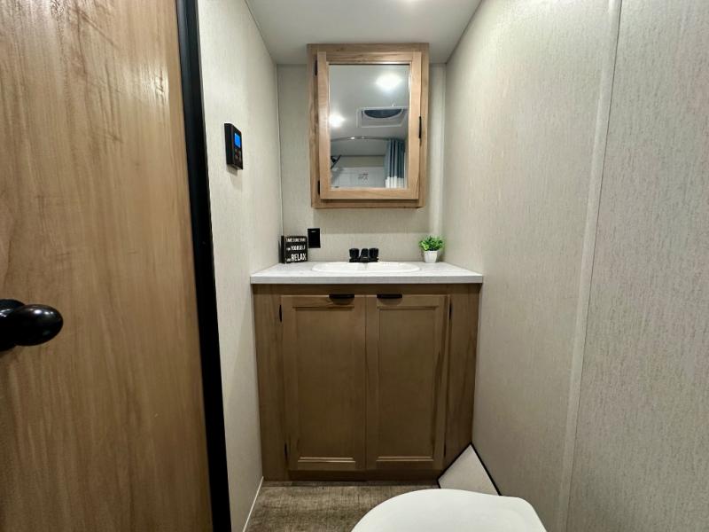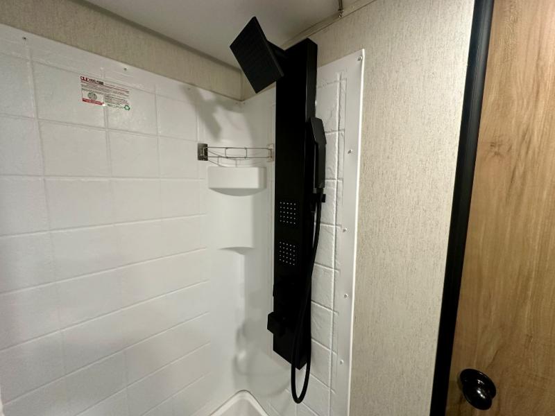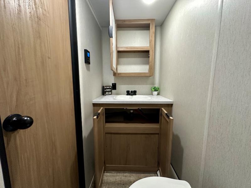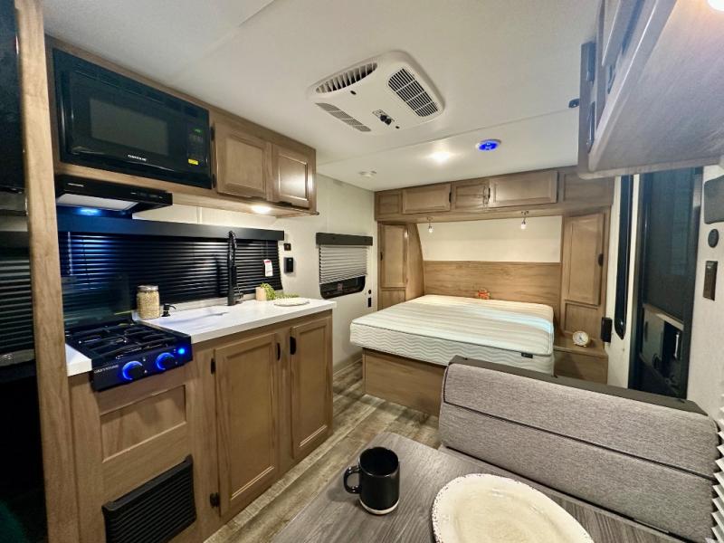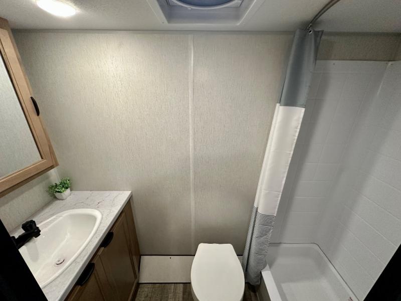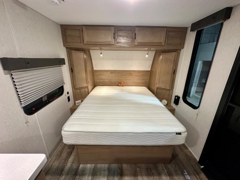 You will love camping in this travel trailer with your own queen bed up front! Freshen up each morning in the full rear bathroom with the tub/shower, toilet, and sink. Fill your bellies with the perishables stored in the 11 cu. ft. 12V high efficiency residential refrigerator and cook them on the high output cooktop. You could even prepare a meal while breathing in some fresh air at the outside mini kitchen while staying protected by the 12' power awning. Easily store all of your outdoor gear in the outside storage area too!