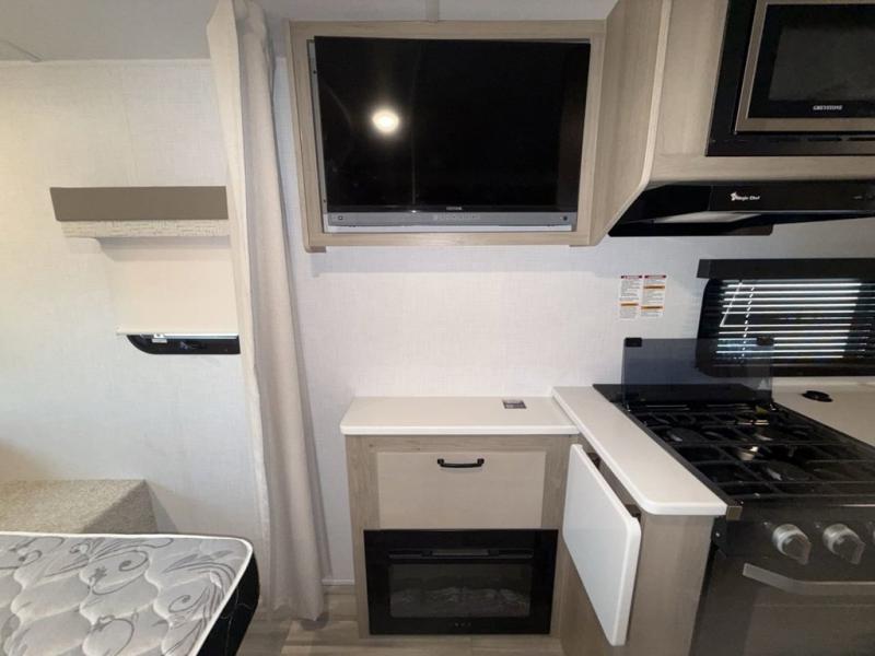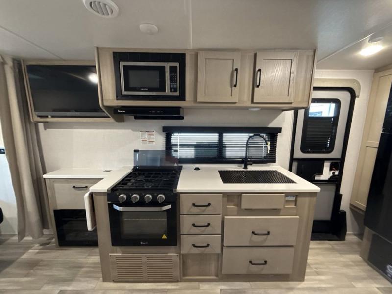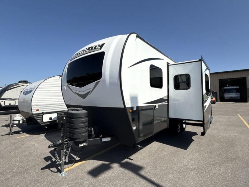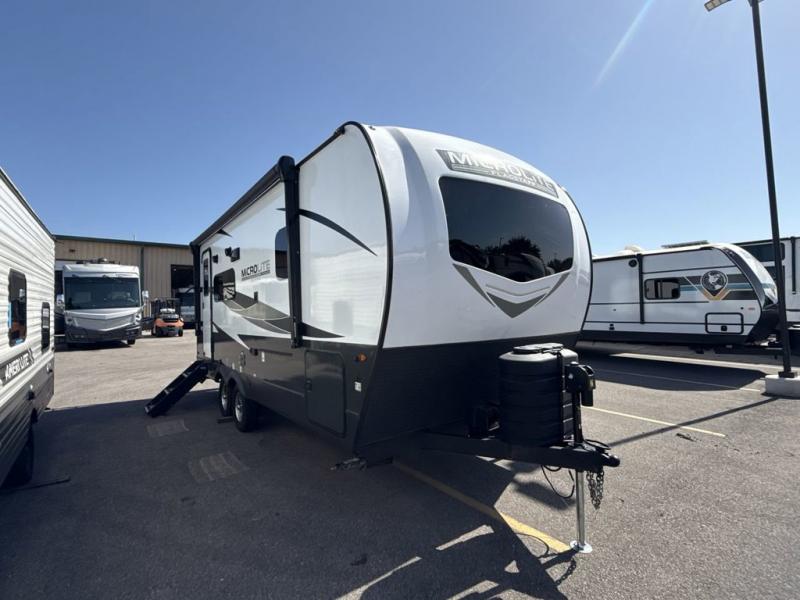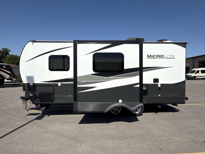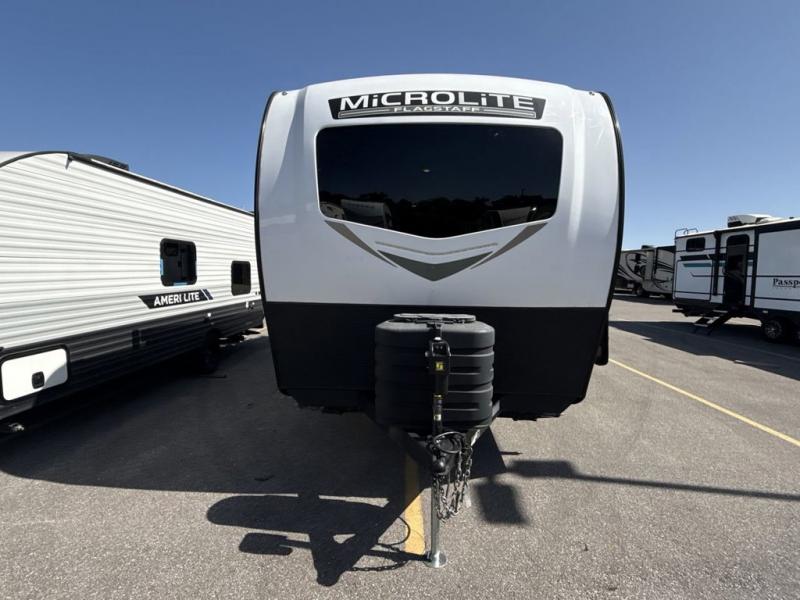 With any Flagstaff Micro Lite travel trailer by Forest River you will enjoy lightweight towing, durable construction, and added interior comforts to make each trip memorable! Each model features a torsion axle, Rubber-Ryde suspension, nitrogen filled, Goodyear Endurance tires, and easy lube axles with Nev-R-Adjust brakes for smooth towing from home to campground. The 6-sided aluminum framed construction provides a strong foundation so you can enjoy your RV for years to come, plus electronically controlled heated holding tanks and an enclosed underbelly will let you camp all year long. Head inside to find hybrid woven flooring in the slide outs, Sedona wood cabinetry, solid surface kitchen countertops, and many more amenities. These travel trailers also include exterior conveniences for hassle-free camping, like the power tongue jack, magnetic compartment door catches, Keyed Alike locks, and rear ladder to name a few!