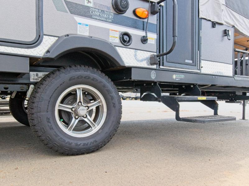 Part of the Sports Enthusiast Package (SE), this camper features a rugged gray sport exterior, stylish autumn wood interior, and wood plank flooring that’s both durable and easy to clean. With electric brakes, 15" Mud Rover tires, and aluminum wheels, it’s ready for off-road adventures.