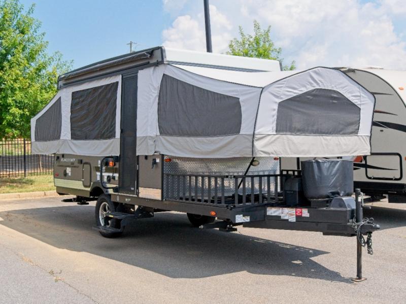 The Flagstaff SE 23SCSE is the ultimate folding pop-up camper for active adventurers who need space, flexibility, and durability. The front deck storage with expanded metal decking is perfect for hauling coolers, bikes, fishing gear, or camping chairs—freeing up interior space for comfort and convenience.