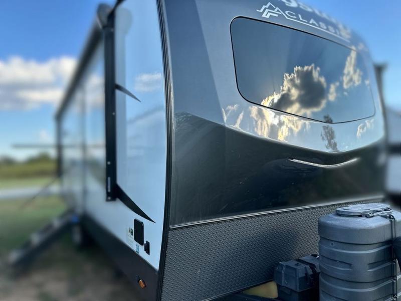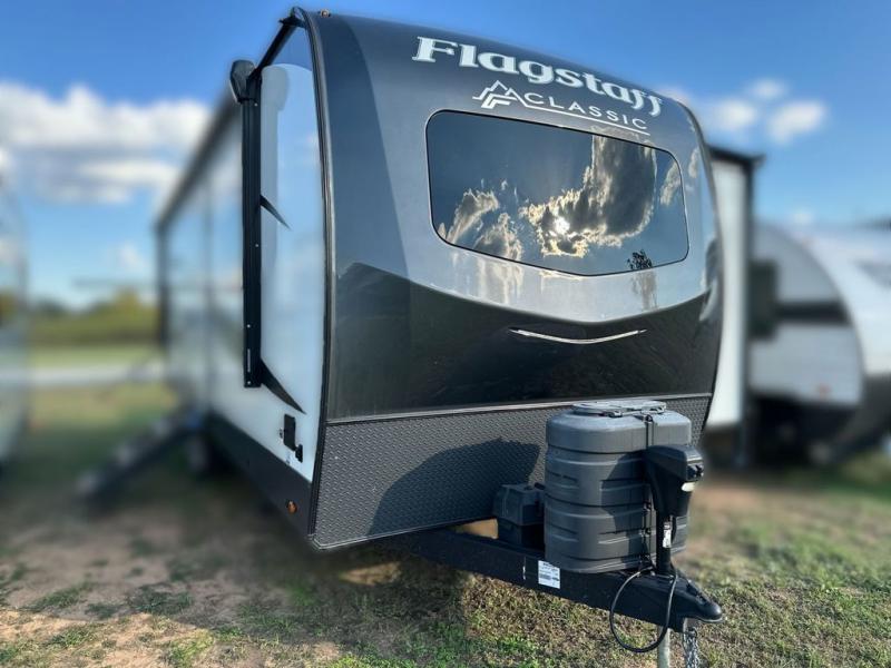Each one of these Forest River Flagstaff Classic fifth wheels or travel trailers will be your home on wheels! Their quality craftsmanship and attention to detail shines through the surface-coated steel I-beam frame on fifth wheels, the enclosed underbelly, the radius roof with vaulted interior ceilings, and six-sided fully aluminum-framed floor, walls, and roof. Towing your unit will be easy with the torsion axle, Rubber-Ryde suspension, and nitrogen-filled Goodyear Endurance tires. You will even reduce your use of water with the Showermiser water saving system in the bathroom. A few other convenient features you will enjoy include a control panel with WeRV app control, a designer headboard and bedding, and an outside shower with hot and cold water. Come choose your favorite one today!