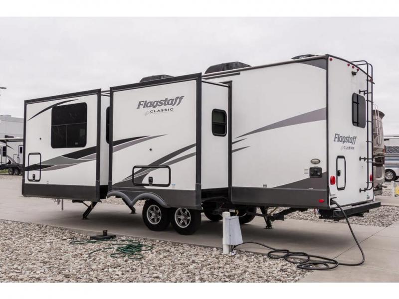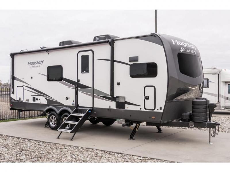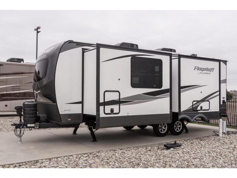 Each one of these Forest River Flagstaff Classic fifth wheels or travel trailers will be your home on wheels! Their quality craftsmanship and attention to detail shines through the surface-coated steel I-beam frame on fifth wheels, the enclosed underbelly, the radius roof with vaulted interior ceilings, and six-sided fully aluminum-framed floor, walls, and roof. Towing your unit will be easy with the torsion axle, Rubber-Ryde suspension, and nitrogen-filled Goodyear Endurance tires. You will even reduce your use of water with the Showermiser water saving system in the bathroom. A few other convenient features you will enjoy include a control panel with WeRV app control, a designer headboard and bedding, and an outside shower with hot and cold water. Come choose your favorite one today!