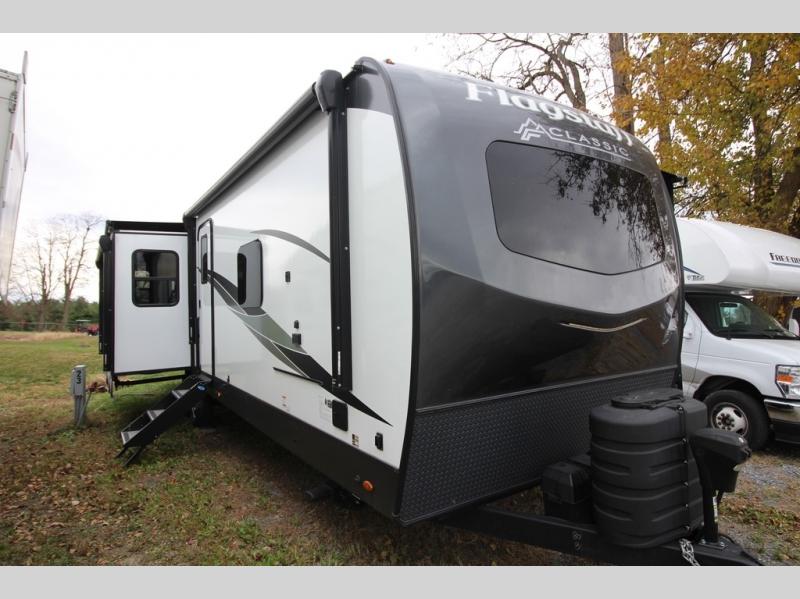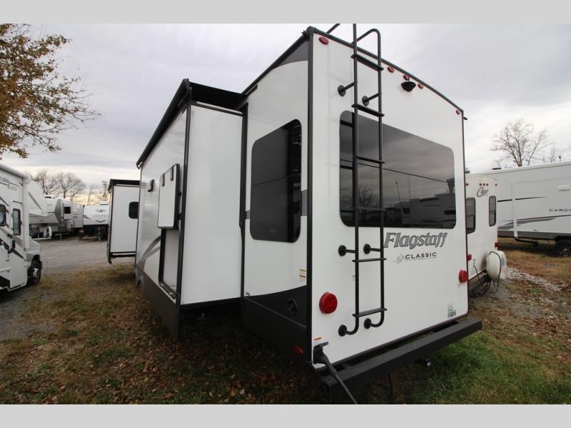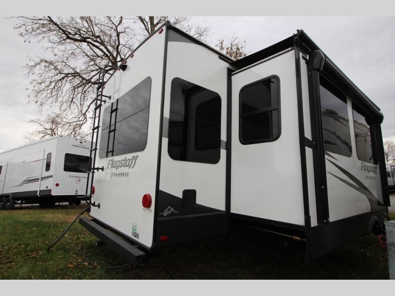 Each one of these Forest River Flagstaff Classic fifth wheels or travel trailers will be your home on wheels! Their quality craftsmanship and attention to detail shines through the surface-coated steel I-beam frame on fifth wheels, the enclosed underbelly, the radius roof with vaulted interior ceilings, and six-sided fully aluminum-framed floor, walls, and roof. Towing your unit will be easy with the torsion axle, Rubber-Ryde suspension, and nitrogen-filled Goodyear Endurance tires. You will even reduce your use of water with the Showermiser water saving system in the bathroom. A few other convenient features you will enjoy include a control panel with WeRV app control, a designer headboard and bedding, and an outside shower with hot and cold water. Come choose your favorite one today!
