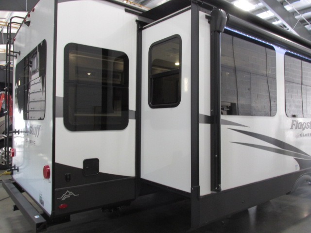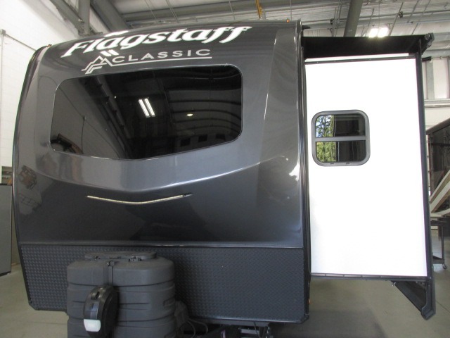 Each one of these Forest River Flagstaff Classic fifth wheels or travel trailers will be your home on wheels! Their quality craftsmanship and attention to detail shines through the surface-coated steel I-beam frame on fifth wheels, the enclosed underbelly, the radius roof with vaulted interior ceilings, and six-sided fully aluminum-framed floor, walls, and roof. Towing your unit will be easy with the torsion axle, Rubber-Ryde suspension, and nitrogen-filled Goodyear Endurance tires. You will even reduce your use of water with the Showermiser water saving system in the bathroom. A few other convenient features you will enjoy include a control panel with WeRV app control, a designer headboard and bedding, and an outside shower with hot and cold water. Come choose your favorite one today!