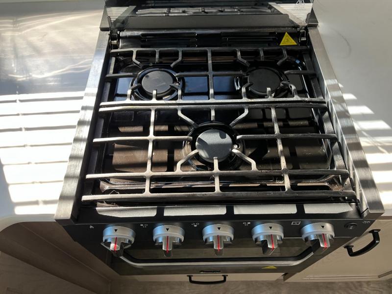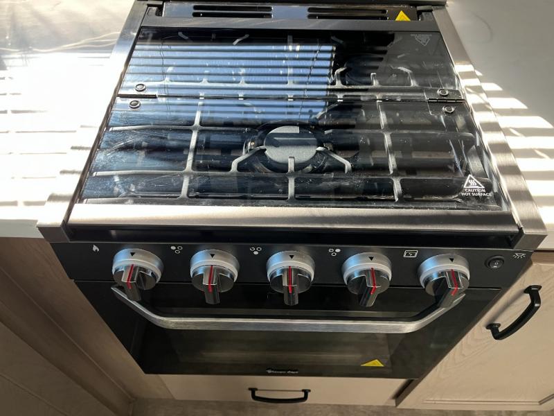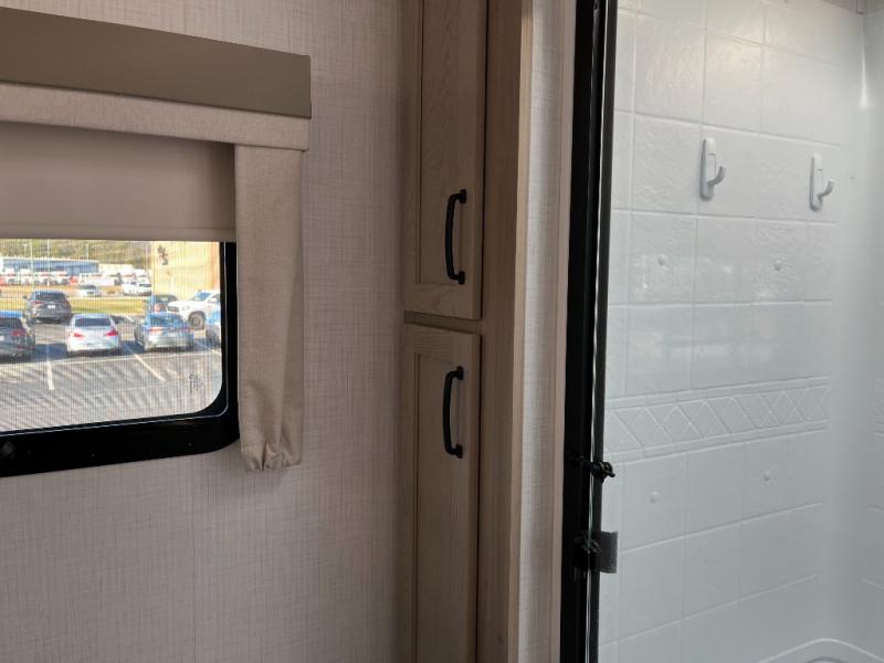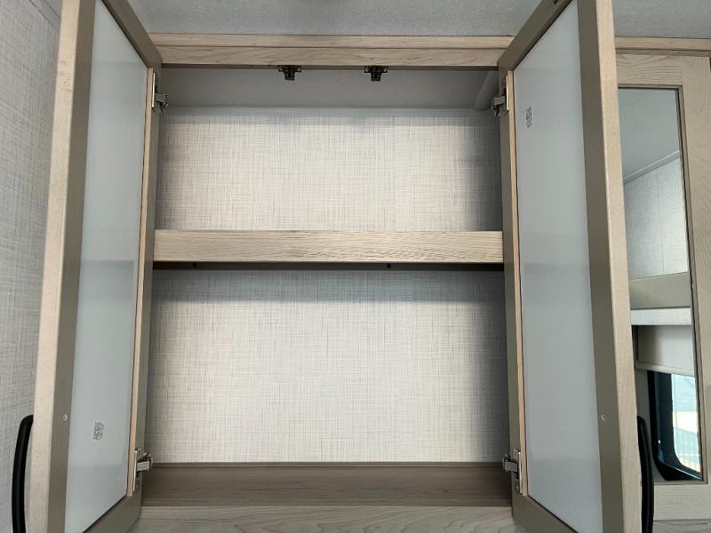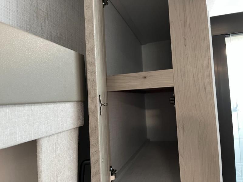 Inside, you’ll find large windows, practical cabinetry, and versatile seating that make the interior feel both welcoming and functional. Thoughtfully placed storage compartments ensure your gear, essentials, and personal belongings are always within reach but out of the way — making the space feel open and clutter-free.