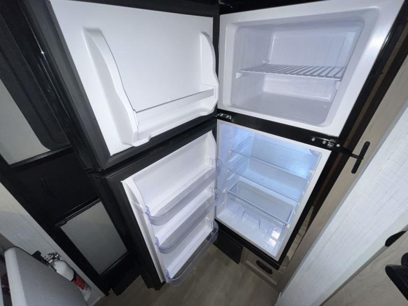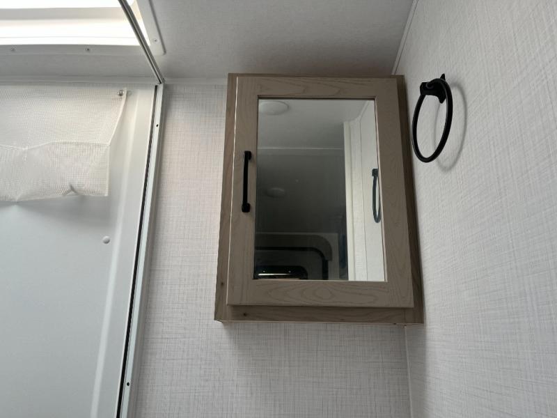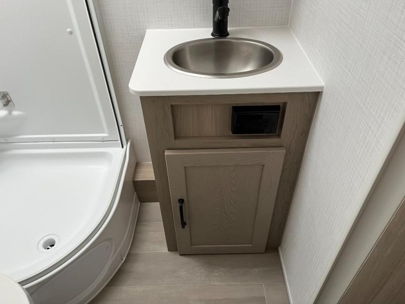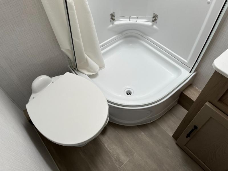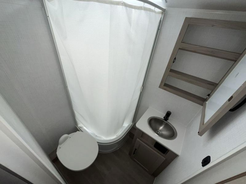 Enjoy the convenience of a private bathroom complete with a shower, toilet, and vanity. No more trips to shared campground restrooms — everything you need is right inside your travel trailer.