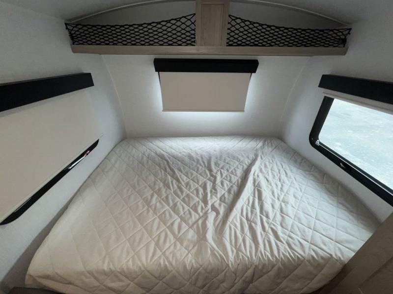 The front bedroom offers a comfortable bed with overhead storage and side shelving, giving you a dedicated space to unwind and recharge. Thoughtful design elements help keep the area open while providing ample room for personal belongings.