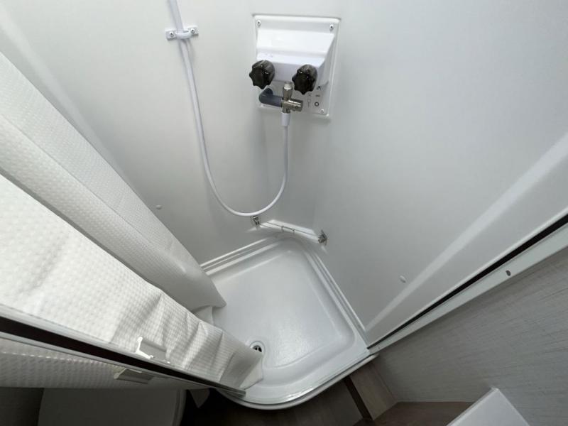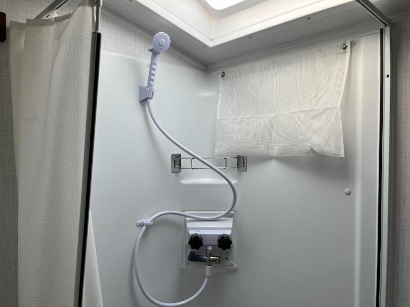 Shower, toilet, and vanity offer everyday convenience anywhere you camp.