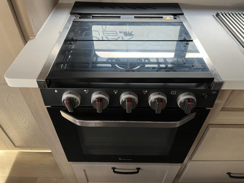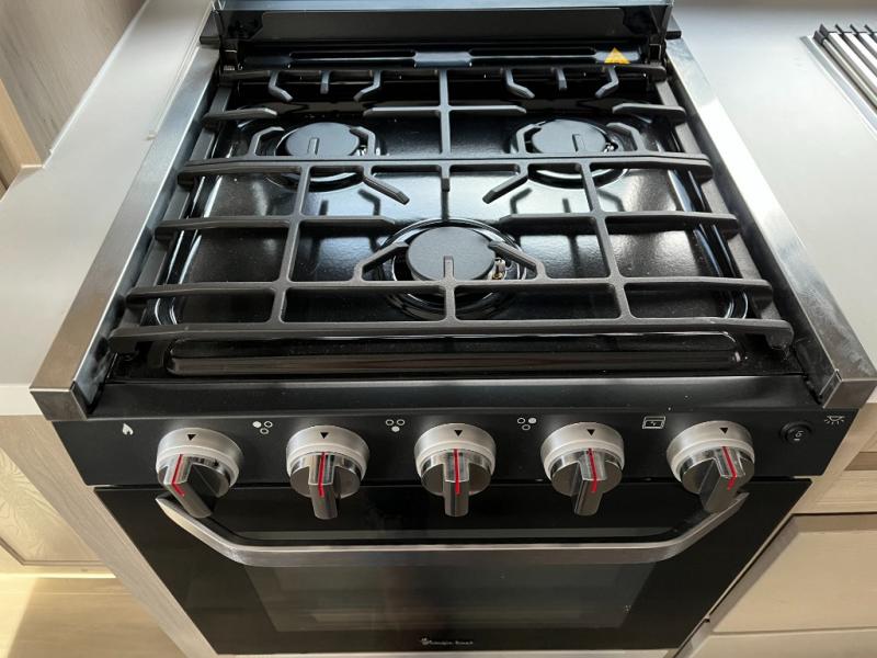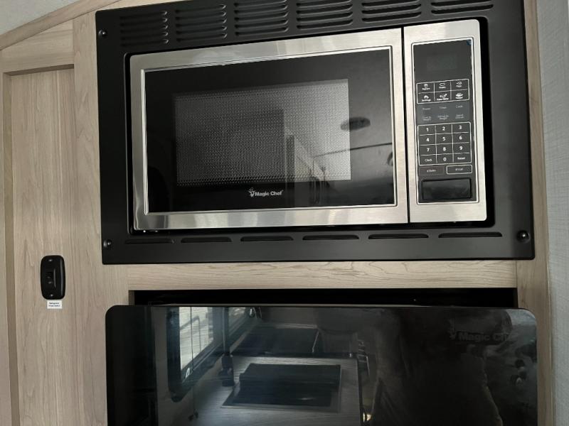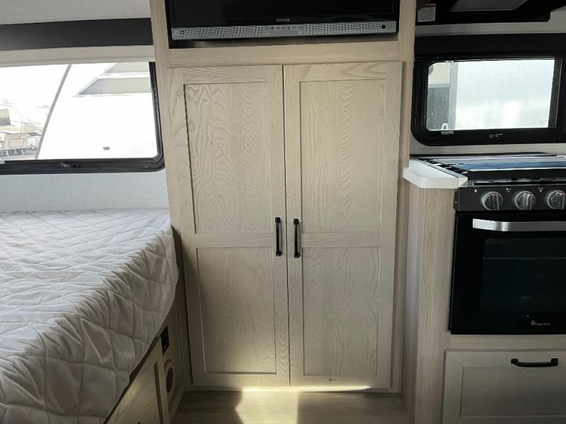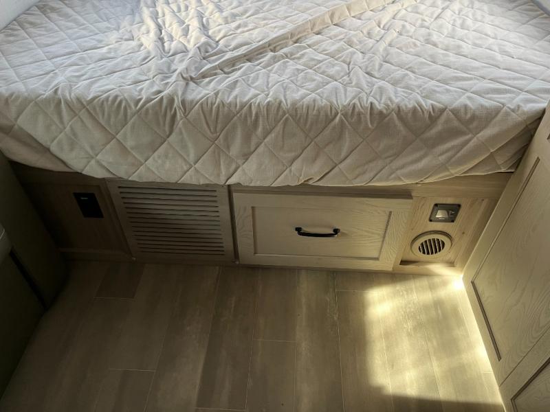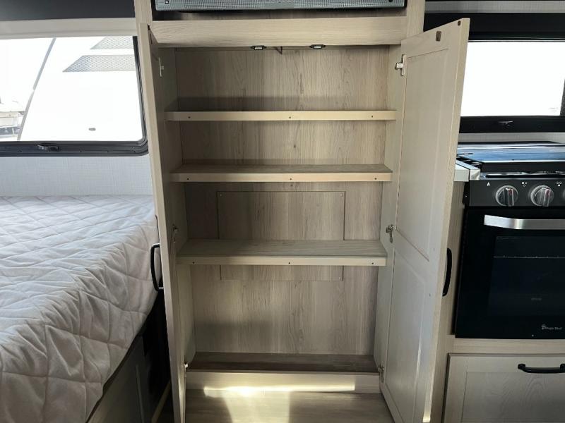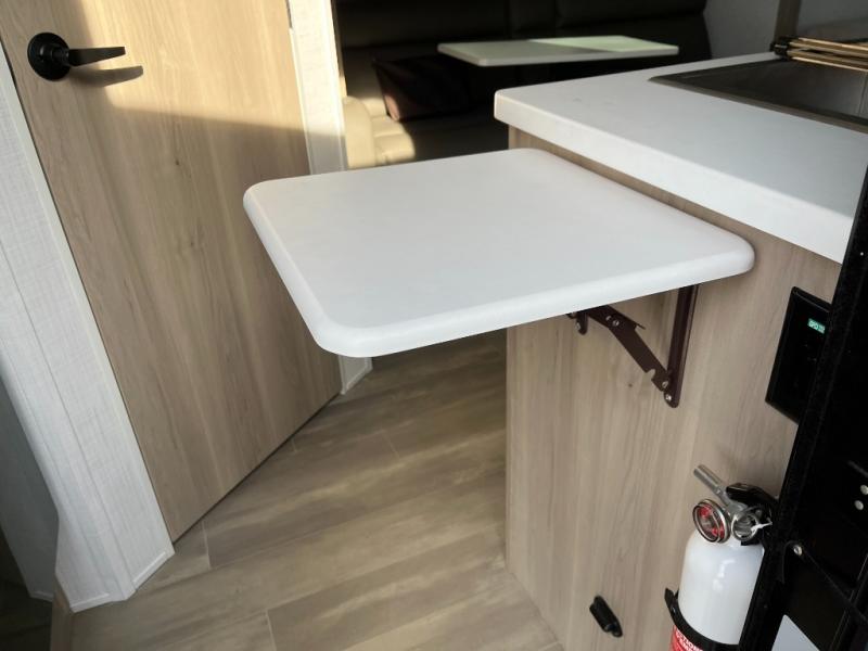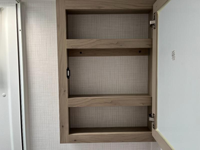 The galley kitchen is designed to support real cooking on the road. Featuring a cooktop, microwave, refrigerator, and smart cabinetry, this kitchen makes it easy to prepare everything from quick breakfasts to campfire-inspired dinners. Efficient storage ensures all your essentials stay organized and within reach.