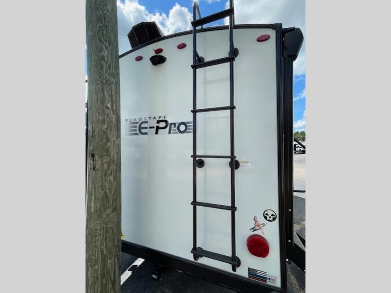 With any Flagstaff E-Pro travel trailer by Forest River, you will experience lightweight towing, style and features that will meet your needs, plus amenities that give you more than you expected! Built with interior and exterior composite sidewall construction, tongue and grove plywood flooring, and a vacuum laminated roof and walls, plus torsion axle, Rubber-Ryde suspension, and a tire pressure monitoring system for safety while traveling. And the 200 watt roof mount solar panel with 1,800-watt inverter will allow you to stay off-grid if you like. The interior offers a comfortable environment with the choice to use the air conditioner or furnace, and a 12V entertainment TV with stereo to stay up to date on your favorite movies. Make your selection today!