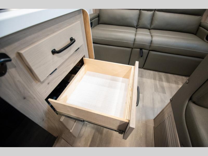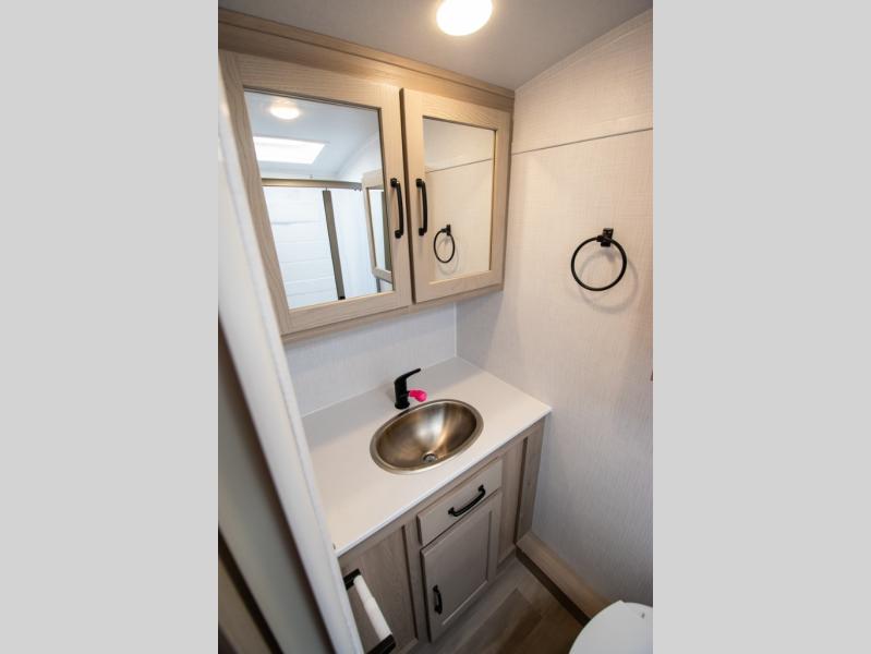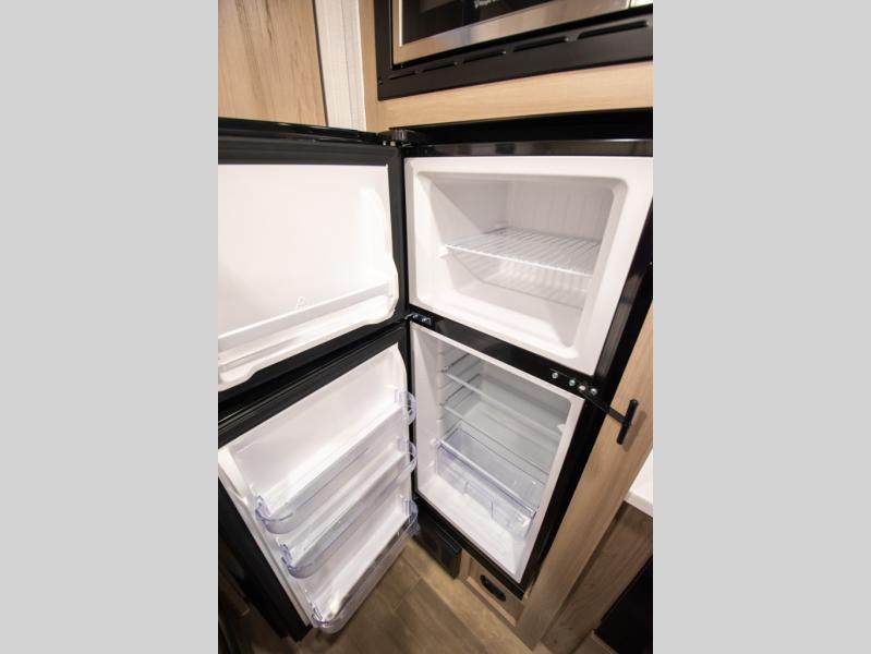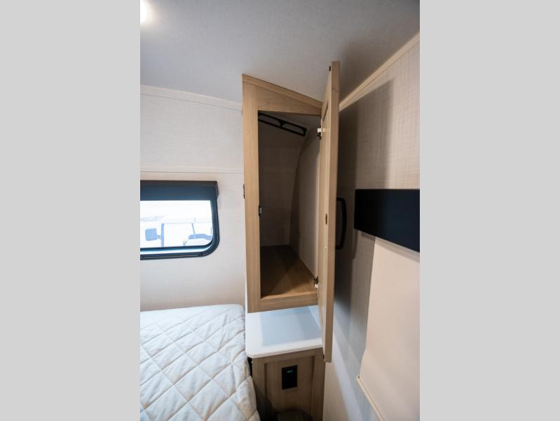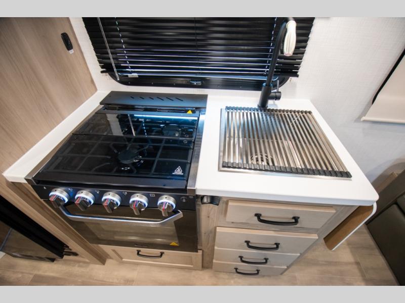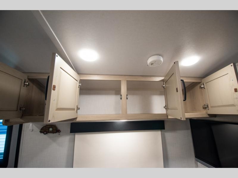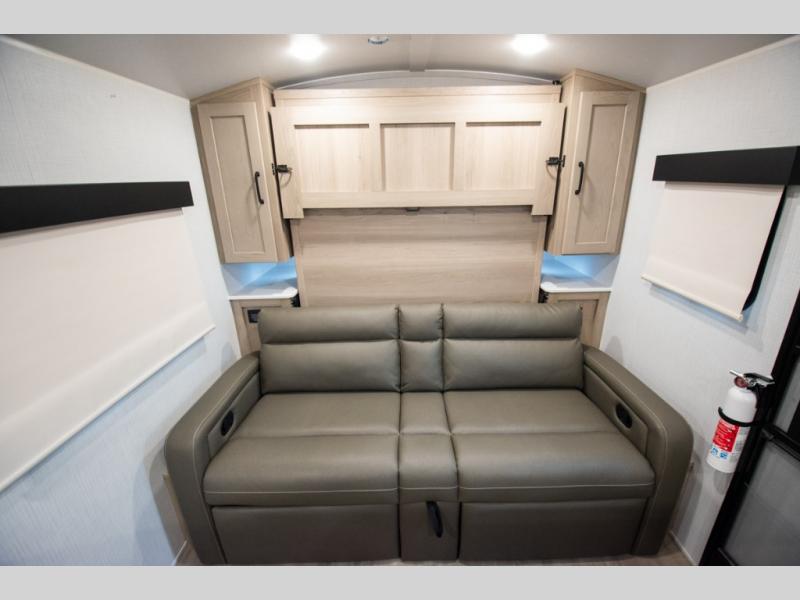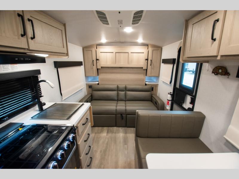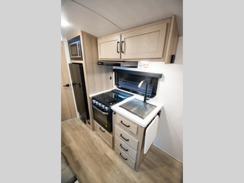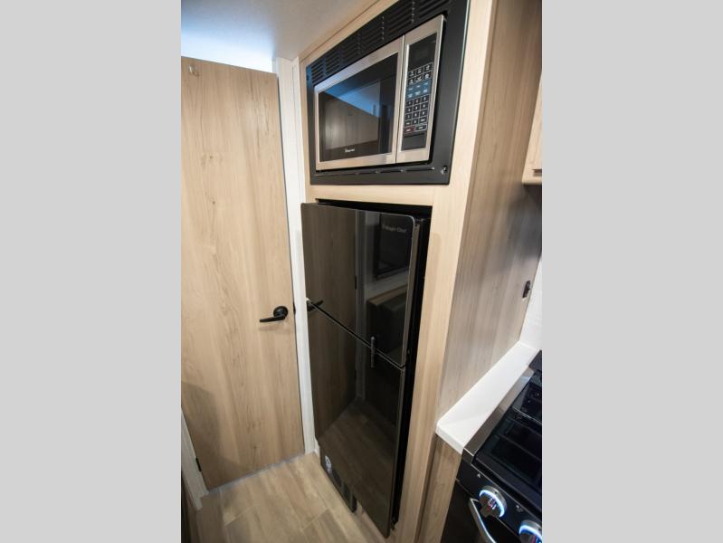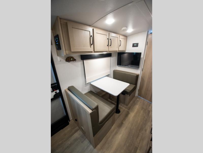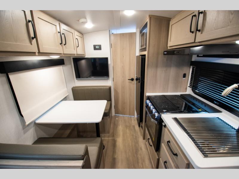 Whether you enjoy staying at the campground for a weekend or longer and/or you enjoy off-grid camping, this 20'2" long trailer gives you lots of interior space and versatility to enjoy each and every trip. From the Murphy bed/sofa combo up front offering sleeping space and seating depending on which you prefer at the time, to the full rear bathroom which also offers linen storage, you will have everything you need. And the kitchen cooktop, microwave and 12V refrigerator allow you to make meals and store leftovers. Two can dine at the booth dinette or you can eat outdoors under the 14' power awning.