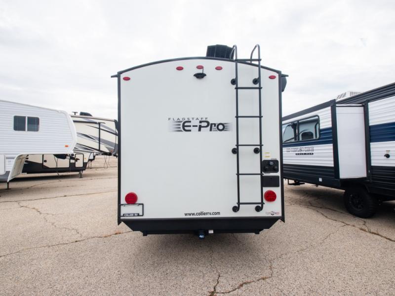 With any Flagstaff E-Pro travel trailer by Forest River, you will experience lightweight towing, style and features that will meet your needs, plus amenities that give you more than you expected! Built with interior and exterior composite sidewall construction, tongue and grove plywood flooring, and a vacuum laminated roof and walls, plus torsion axle, Rubber-Ryde suspension, and a tire pressure monitoring system for safety while traveling. And the 200 watt roof mount solar panel with 1,800-watt inverter will allow you to stay off-grid if you like. The interior offers a comfortable environment with the choice to use the air conditioner or furnace, and a 12V entertainment TV with stereo to stay up to date on your favorite movies. Make your selection today!