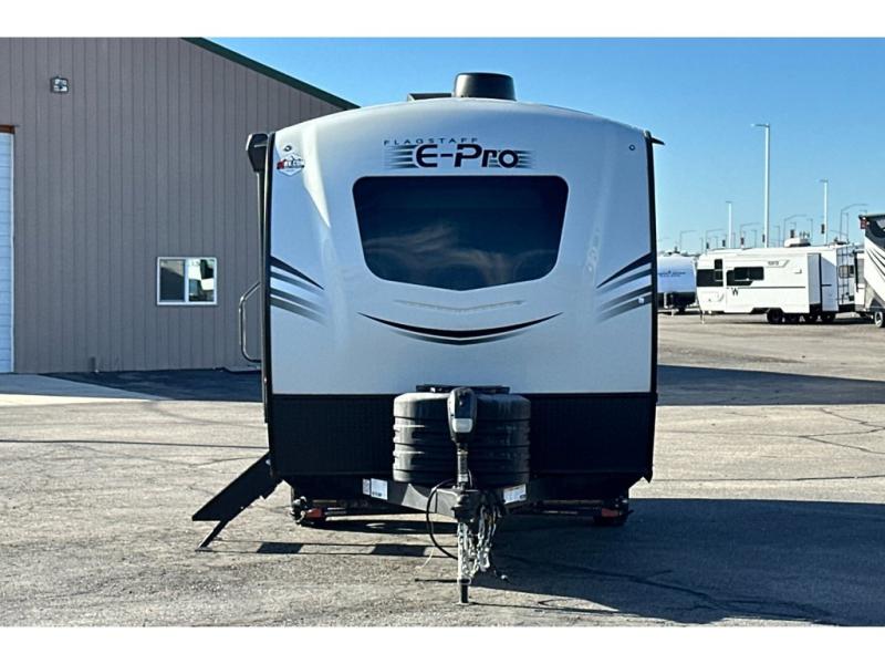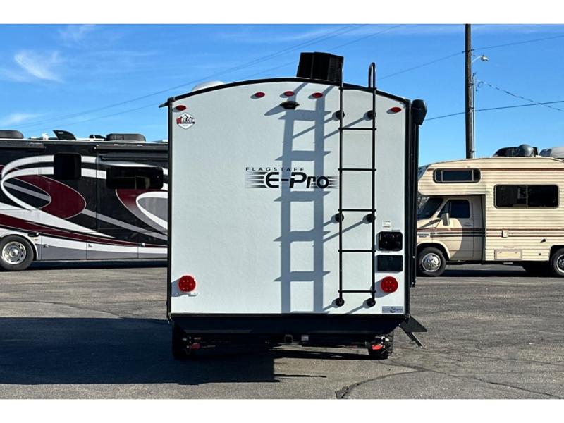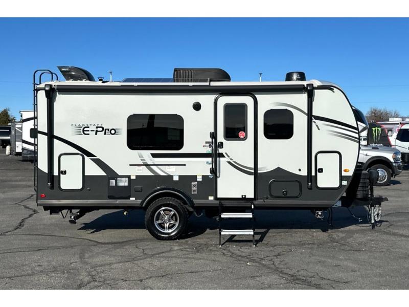 With any Flagstaff E-Pro travel trailer by Forest River, you will experience lightweight towing, style and features that will meet your needs, plus amenities that give you more than you expected! Built with interior and exterior composite sidewall construction, tongue and grove plywood flooring, and a vacuum laminated roof and walls, plus torsion axle, Rubber-Ryde suspension, and a tire pressure monitoring system for safety while traveling. And the 200 watt roof mount solar panel with 1,800-watt inverter will allow you to stay off-grid if you like. The interior offers a comfortable environment with the choice to use the air conditioner or furnace, and a 12V entertainment TV with stereo to stay up to date on your favorite movies. Make your selection today!