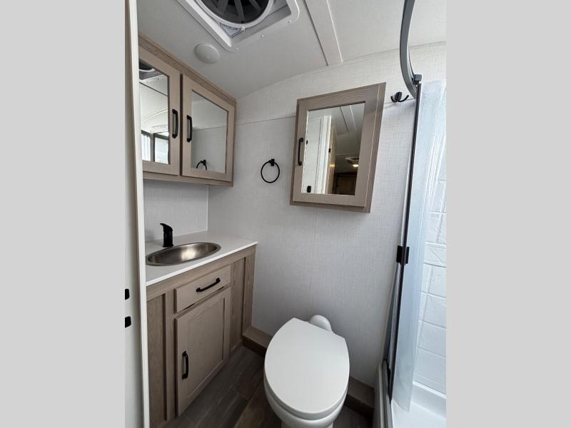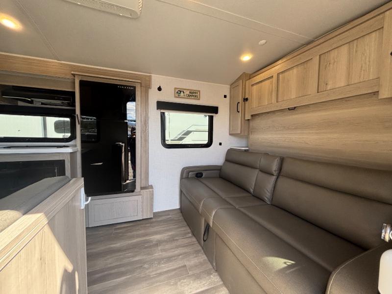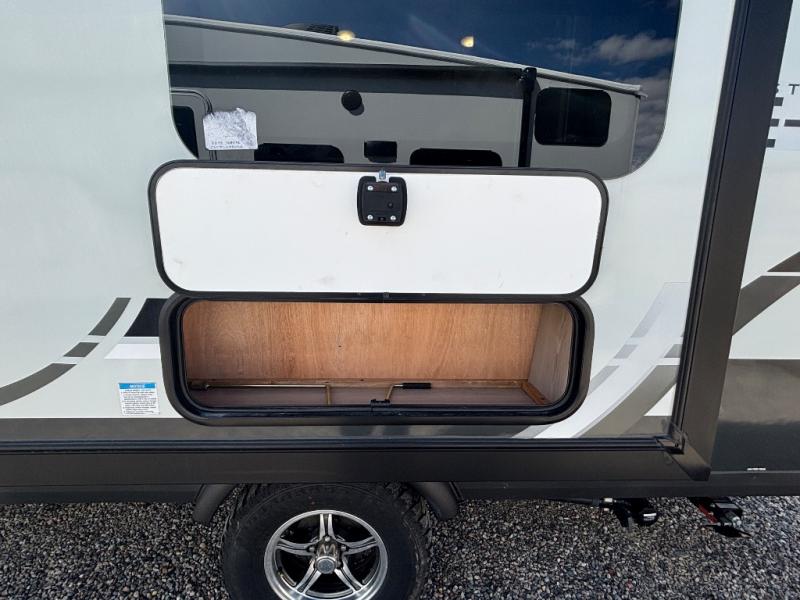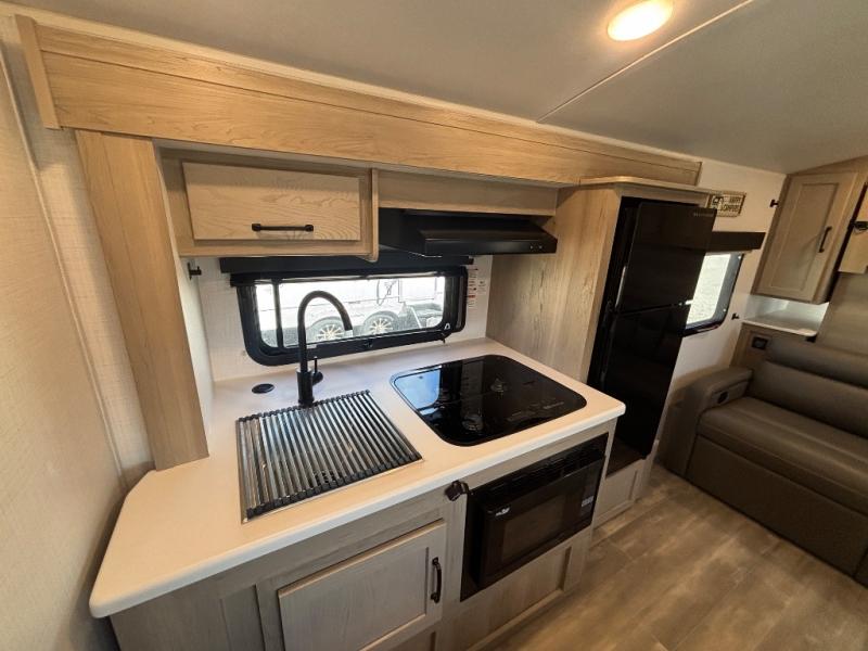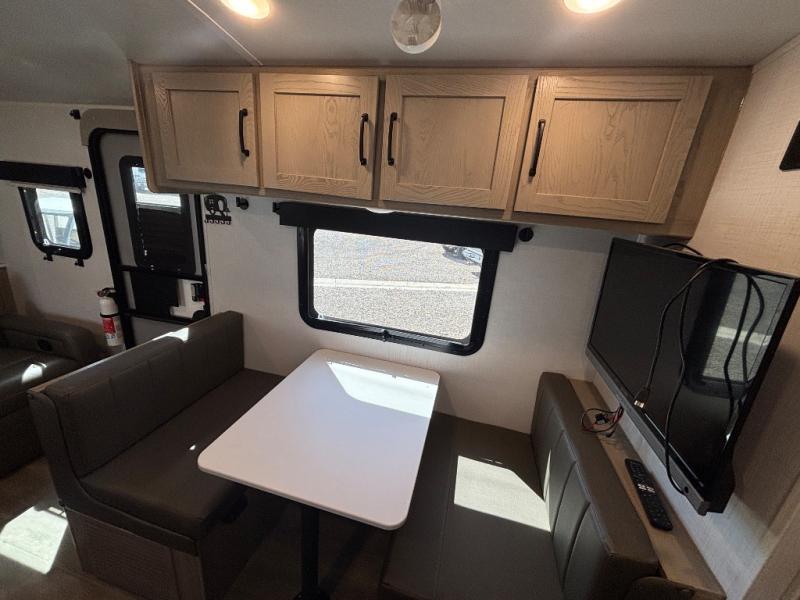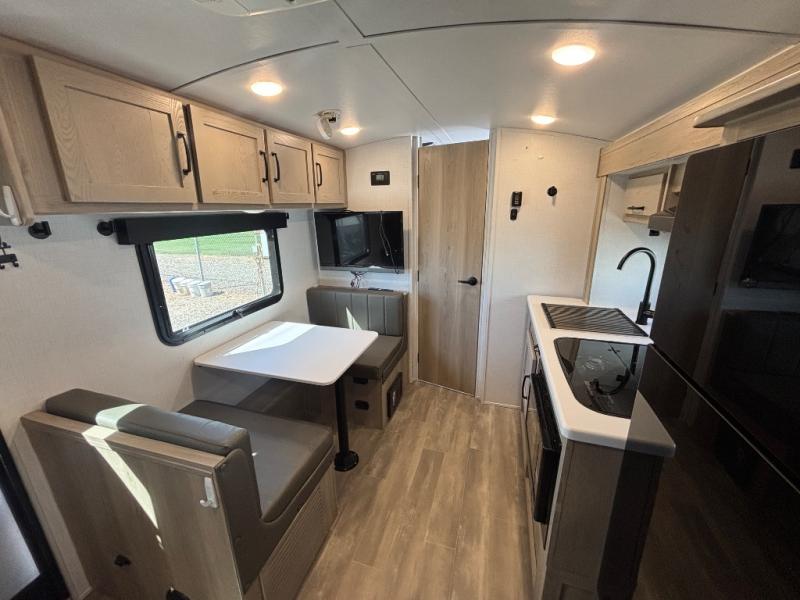Camp with your favorite person in this trailer with the versatile Murphy bed/sofa combo up front giving you both a living area and a bedroom when you so choose. If you need sleeping space for one more, the dinette will provide that once easily setup. The large window gives you great views while dining or playing games. There is extra floor space in this trailer with the kitchen slide out that offers full amenities plus a sink to keep everything clean. And the full-length rear bathroom offers a spacious area to change your clothes in privacy and get cleaned up in the large shower.