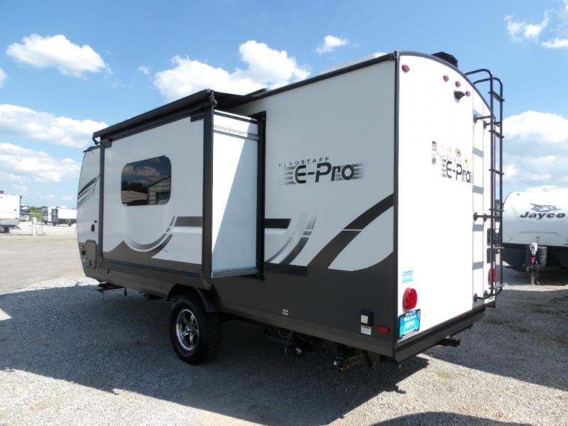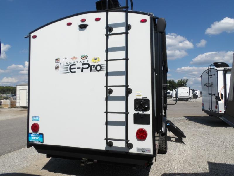 With any Flagstaff E-Pro travel trailer by Forest River, you will experience lightweight towing, style and features that will meet your needs, plus amenities that give you more than you expected! Built with interior and exterior composite sidewall construction, tongue and grove plywood flooring, and a vacuum laminated roof and walls, plus torsion axle, Rubber-Ryde suspension, and a tire pressure monitoring system for safety while traveling. And the 200 watt roof mount solar panel with 1,800-watt inverter will allow you to stay off-grid if you like. The interior offers a comfortable environment with the choice to use the air conditioner or furnace, and a 12V entertainment TV with stereo to stay up to date on your favorite movies. Make your selection today!