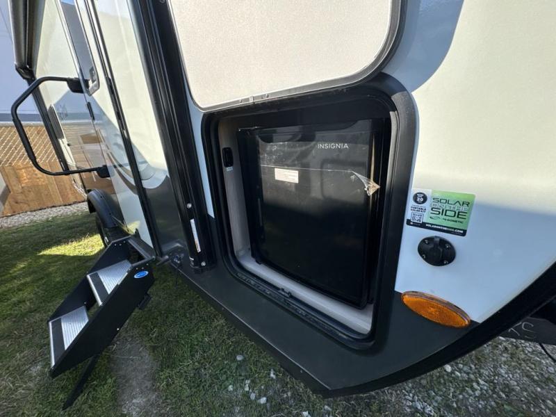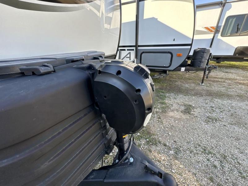 The chef will love cooking in the front kitchen of this travel trailer! It offers plenty of countertop space to meal prep and all of the essentials to cook delicious meals, plus there is even an outside kitchen with a refrigerator, a pull-out stove, and a griddle to fry what you caught that day. Enjoy all of your meals at the 72" sofa slide with a table or pull up a table and chairs under the 15' power awning. The queen bed offers a comfortable place for you to rest up each night and it even has a 26" x 80" flip-up bunk above it for a guest or two to tag along. Store all of your camping essentials in the exterior storage and rinse your feet off with the outside spray port after a fun day at the beach!
