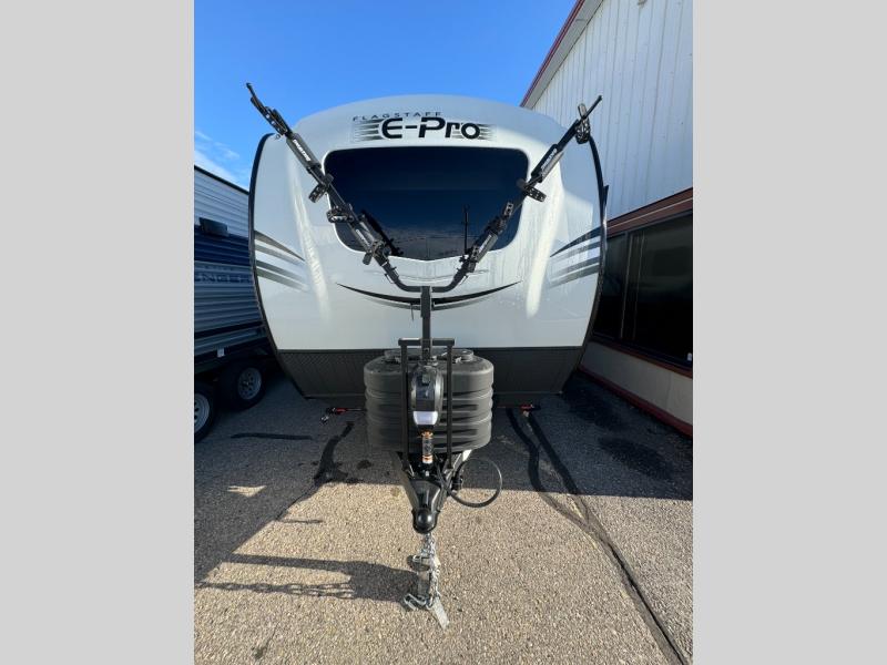 With any Flagstaff E-Pro travel trailer by Forest River, you will experience lightweight towing, style and features that will meet your needs, plus amenities that give you more than you expected! Built with interior and exterior composite sidewall construction, tongue and grove plywood flooring, and a vacuum laminated roof and walls, plus torsion axle, Rubber-Ryde suspension, and a tire pressure monitoring system for safety while traveling. And the 200 watt roof mount solar panel with 1,800-watt inverter will allow you to stay off-grid if you like. The interior offers a comfortable environment with the choice to use the air conditioner or furnace, and a 12V entertainment TV with stereo to stay up to date on your favorite movies. Make your selection today!