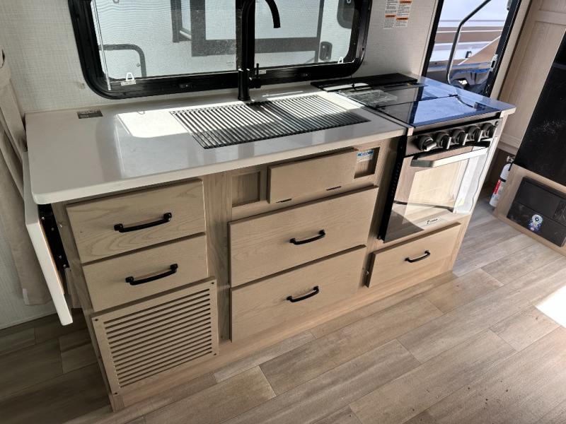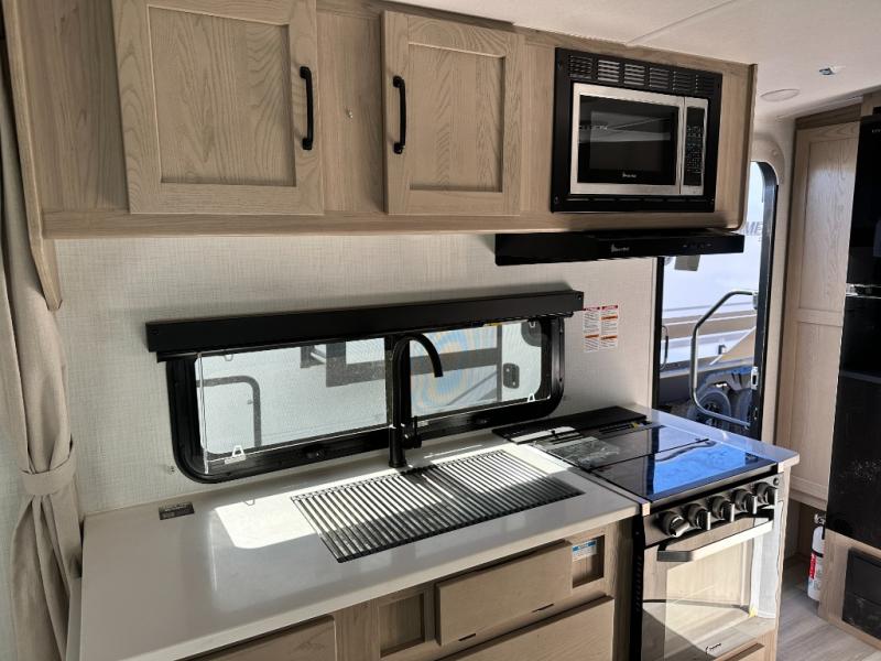 With any Flagstaff Micro Lite travel trailer by Forest River you will enjoy lightweight towing, durable construction, and added interior comforts to make each trip memorable! Each model features a torsion axle, Rubber-Ryde suspension, nitrogen filled, Goodyear Endurance tires, and easy lube axles with Nev-R-Adjust brakes for smooth towing from home to campground. The 6-sided aluminum framed construction provides a strong foundation so you can enjoy your RV for years to come, plus electronically controlled heated holding tanks and an enclosed underbelly will let you camp all year long. Head inside to find hybrid woven flooring in the slide outs, Sedona wood cabinetry, solid surface kitchen countertops, and many more amenities. These travel trailers also include exterior conveniences for hassle-free camping, like the power tongue jack, magnetic compartment door catches, Keyed Alike locks, and rear ladder to name a few!