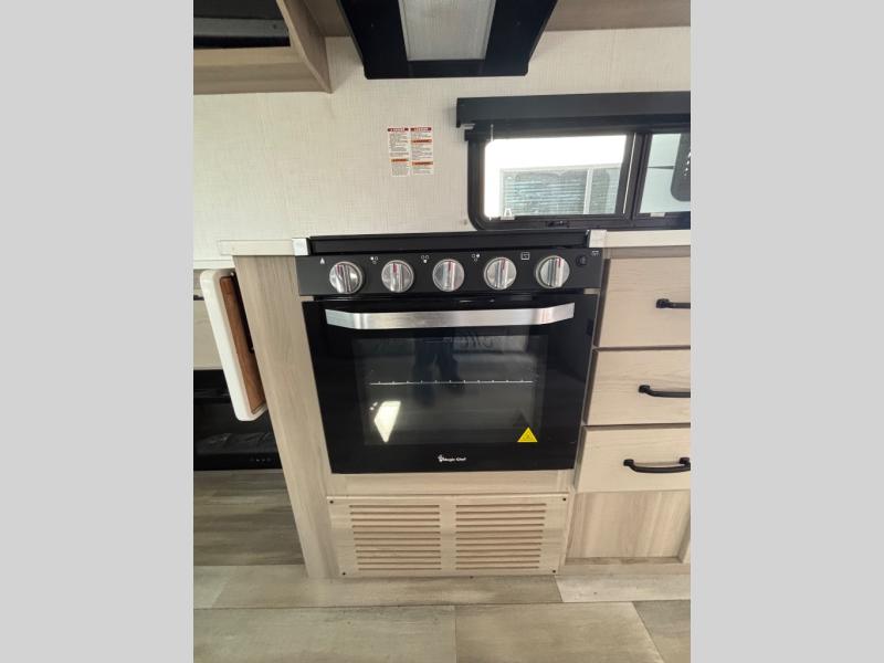 Make your vacations everything you've always wanted them to be with this Flagstaff Micro Lite travel trailer! A full bathroom with a radius shower, linen closet, and skylight will allow you to stay clean without having to find a public rest stop. There is also a three-burner range, a gas oven, and a 12 volt refrigerator will allow you to eat more than just fast food while you are away from home. You can even sleep just as comfortably as you do at home because the queen-size bed up front will provide peaceful dreams each and every night.