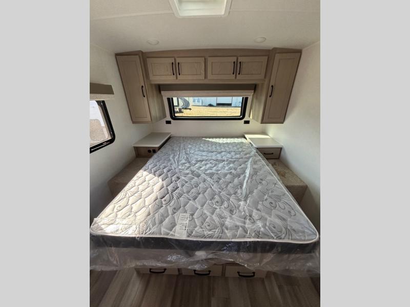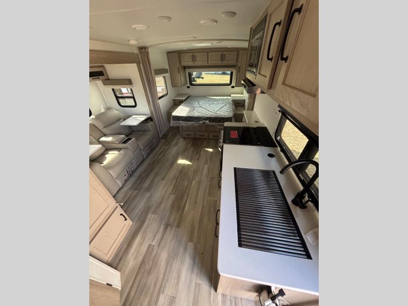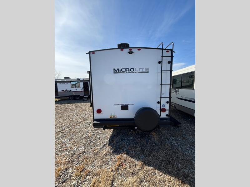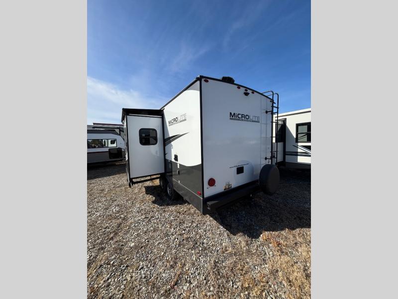 With any Flagstaff Micro Lite travel trailer by Forest River you will enjoy lightweight towing, durable construction, and added interior comforts to make each trip memorable! Each model features a torsion axle, Rubber-Ryde suspension, nitrogen filled, Goodyear Endurance tires, and easy lube axles with Nev-R-Adjust brakes for smooth towing from home to campground. The 6-sided aluminum framed construction provides a strong foundation so you can enjoy your RV for years to come, plus electronically controlled heated holding tanks and an enclosed underbelly will let you camp all year long. Head inside to find hybrid woven flooring in the slide outs, Sedona wood cabinetry, solid surface kitchen countertops, and many more amenities. These travel trailers also include exterior conveniences for hassle-free camping, like the power tongue jack, magnetic compartment door catches, Keyed Alike locks, and rear ladder to name a few!
