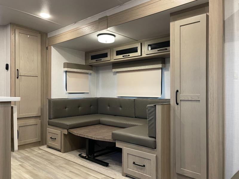 With any Flagstaff Micro Lite travel trailer by Forest River you will enjoy lightweight towing, durable construction, and added interior comforts to make each trip memorable! Each model features a torsion axle, Rubber-Ryde suspension, nitrogen filled, Goodyear Endurance tires, and easy lube axles with Nev-R-Adjust brakes for smooth towing from home to campground. The 6-sided aluminum framed construction provides a strong foundation so you can enjoy your RV for years to come, plus electronically controlled heated holding tanks and an enclosed underbelly will let you camp all year long. Head inside to find hybrid woven flooring in the slide outs, Sedona wood cabinetry, solid surface kitchen countertops, and many more amenities. These travel trailers also include exterior conveniences for hassle-free camping, like the power tongue jack, magnetic compartment door catches, Keyed Alike locks, and rear ladder to name a few!