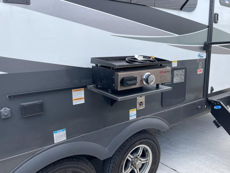 Load up your family of eight and head out to the campground of your choice with this Flagstaff Micro Lite travel trailer in tow! The kids will enjoy the double-size bunks so that they can invite their friends or cousins. This unit features a single slide with a U-shaped dinette so that you can gather around for family game night. And the dinette can be replaced by an optional theater seat or optional hide-a-bed sofa, depending on your needs! Relax on the sofa and visit with friends before converting the sofa into a Murphy bed. Everyone will appreciate having a full bathroom with a shower skylight above the shower for some extra sunlight while getting ready. Spend time outdoors with a an outside kitchen so that you can enjoy dinner under the stars.