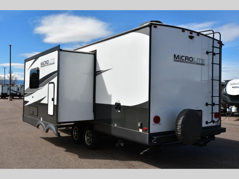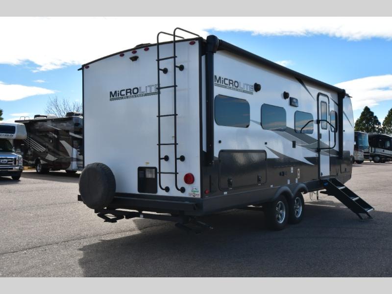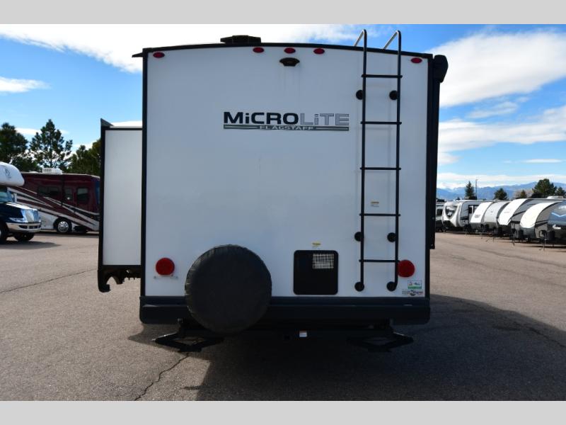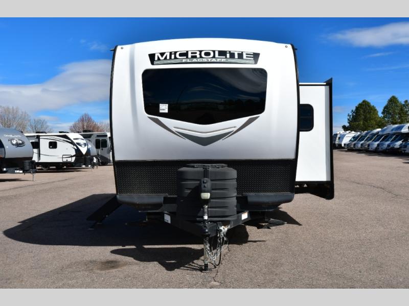 With any Flagstaff Micro Lite travel trailer by Forest River you will enjoy lightweight towing, durable construction, and added interior comforts to make each trip memorable! Each model features a torsion axle, Rubber-Ryde suspension, nitrogen filled, Goodyear Endurance tires, and easy lube axles with Nev-R-Adjust brakes for smooth towing from home to campground. The 6-sided aluminum framed construction provides a strong foundation so you can enjoy your RV for years to come, plus electronically controlled heated holding tanks and an enclosed underbelly will let you camp all year long. Head inside to find hybrid woven flooring in the slide outs, Sedona wood cabinetry, solid surface kitchen countertops, and many more amenities. These travel trailers also include exterior conveniences for hassle-free camping, like the power tongue jack, magnetic compartment door catches, Keyed Alike locks, and rear ladder to name a few!