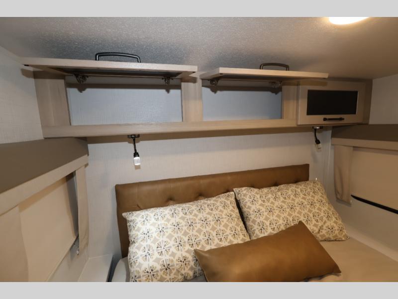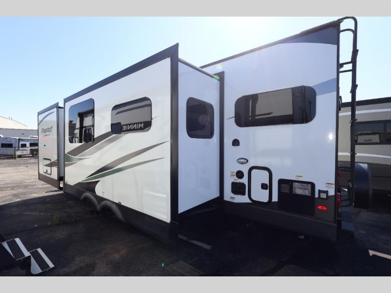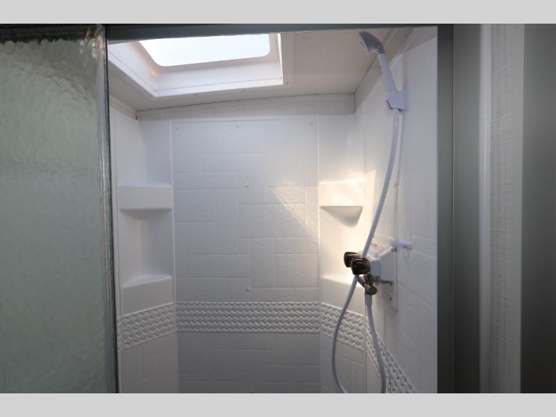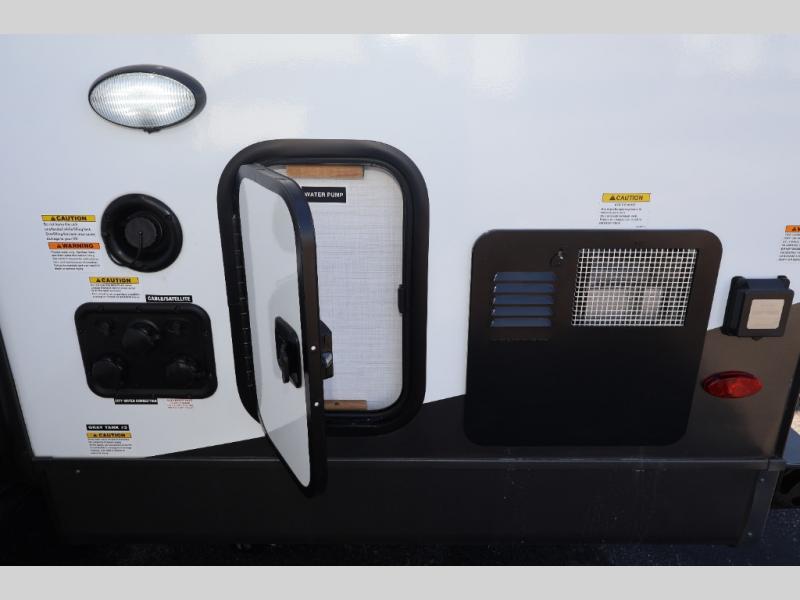 With any Flagstaff Super Lite travel trailer by Forest River the towing features include the TST tire pressure monitor system with a monitor providing safety on the road, Easy Lube axles and Nev-R adjust brakes, a power tongue jack for easy setup, and rear observation camera prep. Each is built with 6 sided aluminum framed side walls, end wall, front, floor and a roof, a plywood tongue and groove subfloor, electronically controlled heated holding tanks and an enclosed underbelly allowing you to travel during any season. The interior offers a multi-zone stereo with DVD, CD, AM/FM and Bluetooth control, a Showermiser water saving system, designer bedding and so much more!