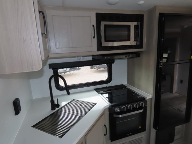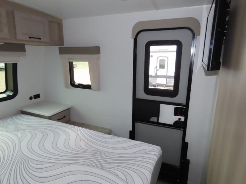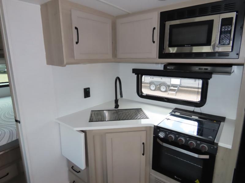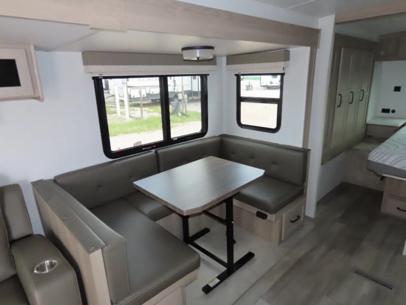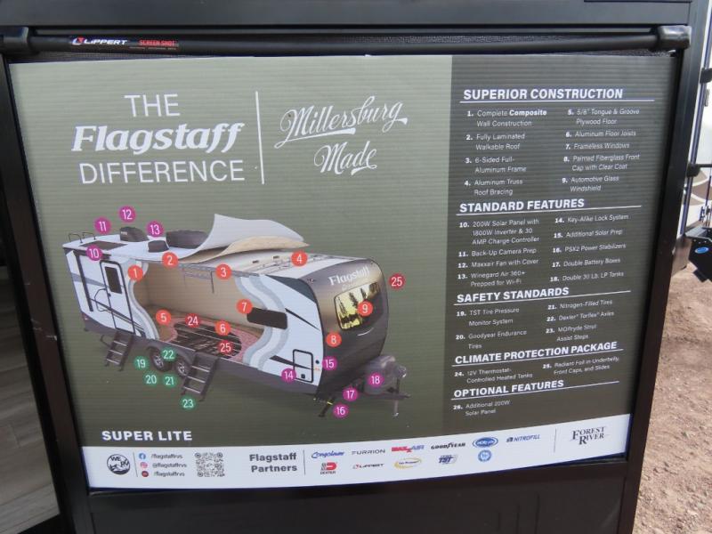 With any Flagstaff Super Lite travel trailer by Forest River the towing features include the TST tire pressure monitor system with a monitor providing safety on the road, Easy Lube axles and Nev-R adjust brakes, a power tongue jack for easy setup, and rear observation camera prep. Each is built with 6 sided aluminum framed side walls, end wall, front, floor and a roof, a plywood tongue and groove subfloor, electronically controlled heated holding tanks and an enclosed underbelly allowing you to travel during any season. The interior offers a multi-zone stereo with DVD, CD, AM/FM and Bluetooth control, a Showermiser water saving system, designer bedding and so much more!