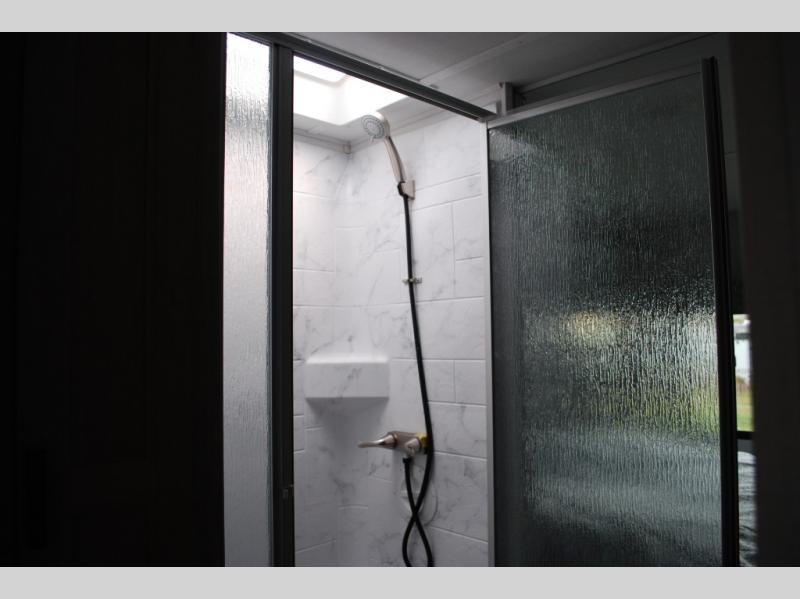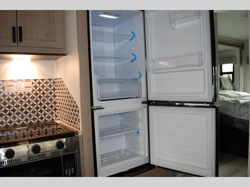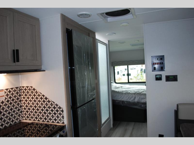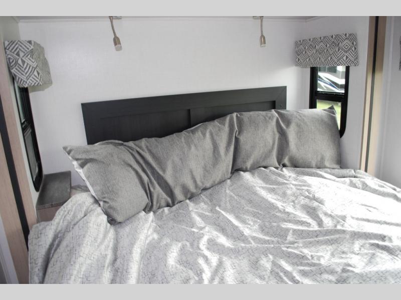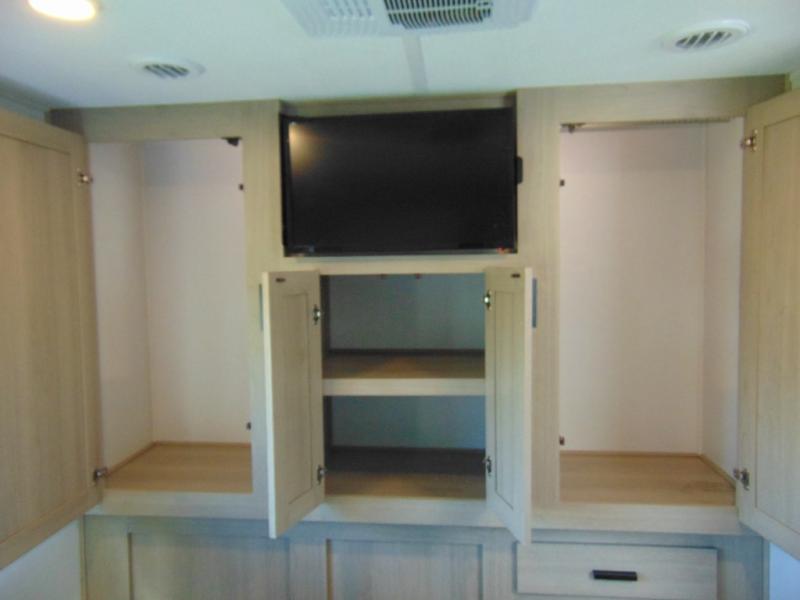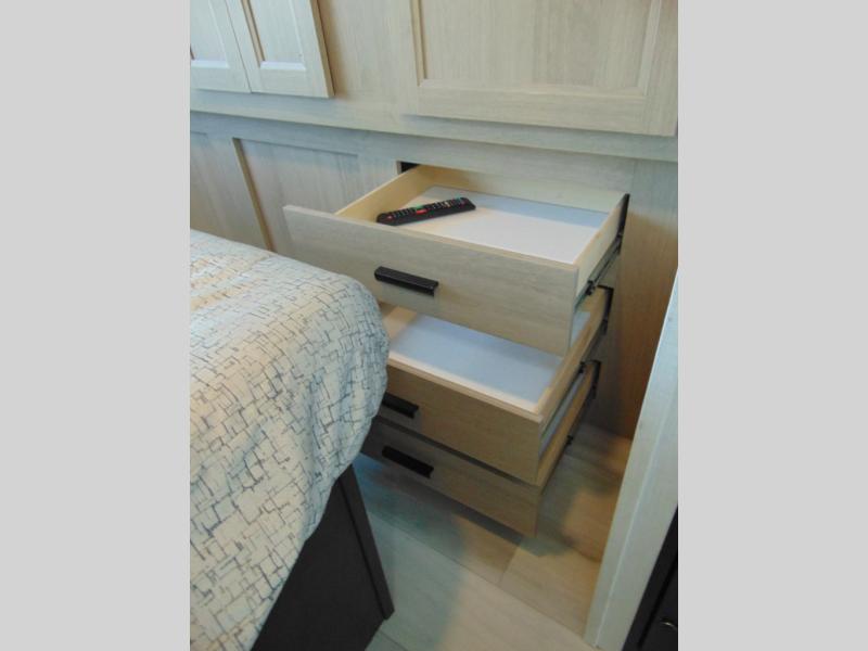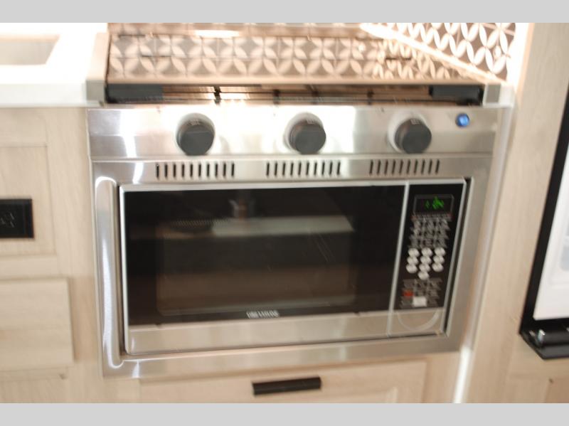 Escape the hustle and bustle of everyday life with this motorhome! It features a 60" x 80" bunk over cab mat which can be switched out for an optional Trekker cap with a built-in entertainment center. The sofa and U-shaped dinette slide offer comfortable places to enjoy meals, socialize, and even sleep once converted. Prepare your best meals with the 10.7 cu. ft. 12V refrigerator, the three burner cooktop, the flip-up countertop, and even the 1.3 cu. ft. undermount convection microwave. The separated bathroom has a 24" x 32" shower across from a toilet with a sink and countertop space, plus it leads directly into the rear private bedroom which has a 60" x 74" queen bed slide across from a linen/12V TV area with wardrobes on either side. You can even add an optional outside 12V TV and stay protected by the 15' 6" power awning!