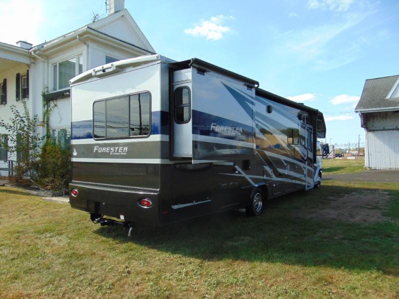 With any Forester Classic Class C gas motorhome by Forest River you will enjoy comfort at every turn! They offer a smooth ride with the EZ Ryde premium suspension system, and the ultra leather captain's seats will ensure comfort wherever you go. There are heated, enclosed holding tanks and valves plus block foam insulation to enjoy four-seasons camping, and the gel coat exterior fiberglass is slick and easy to keep clean. A keyless entry comes standard for your convenience, along with a color back-up camera and side view cameras with a 3-way monitor for added safety when parking. The Forester Classic motorhomes also include a Maxx Air multi-speed power fan with a cover, a shower skylight, a cordless 12V charging plate, plus black out roller shades for privacy any time.