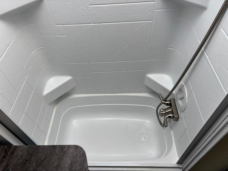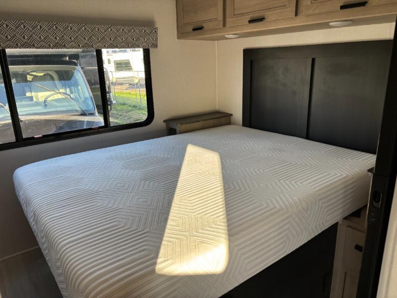 With any Forester LE Class C gas motorhome by Forest River, you will enjoy premier features such as the backup camera/side view cameras with a 3-way monitor, the Winegard Air 360+ digital antenna, and the 15,000 BTU ceiling ducted, ultra quiet roof air with a heat pump when traveling during the warmer months. The exterior includes aluminum framed laminated sidewalls, gel coat exterior fiberglass, a one-piece fiberglass front cap, and slide room toppers. Some of the interior top features are the Maxx Air multi-speed power fan with a cover in the kitchen, the high pressure oxygen infused shower head, and the blackout roller shades for a good night's sleep. Make your selection today!