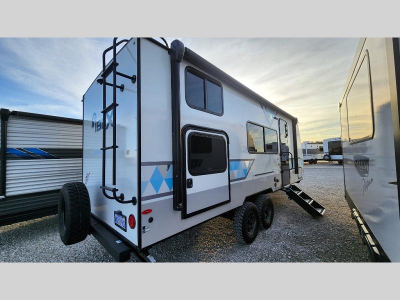 With any IBEX travel trailer or toy hauler by Forest River, the interior offers stainless steel appliances for style, seamless countertops for durability and easy care, and a largest-in-class refrigerator for more cold storage. The Azdel construction and PVC roof will help extend the life of your unit, and the all terrain tires and increased ground clearance means you can go more places. A JBL wireless Bluetooth audio system also comes standard so you can listen to your favorite tunes, along with Rhino-Rack RTV tracks to keep your gear secure!