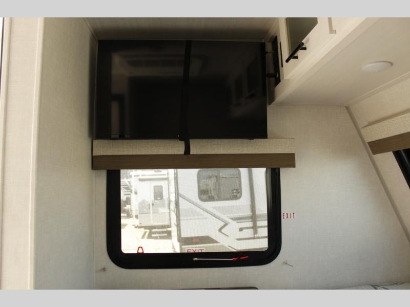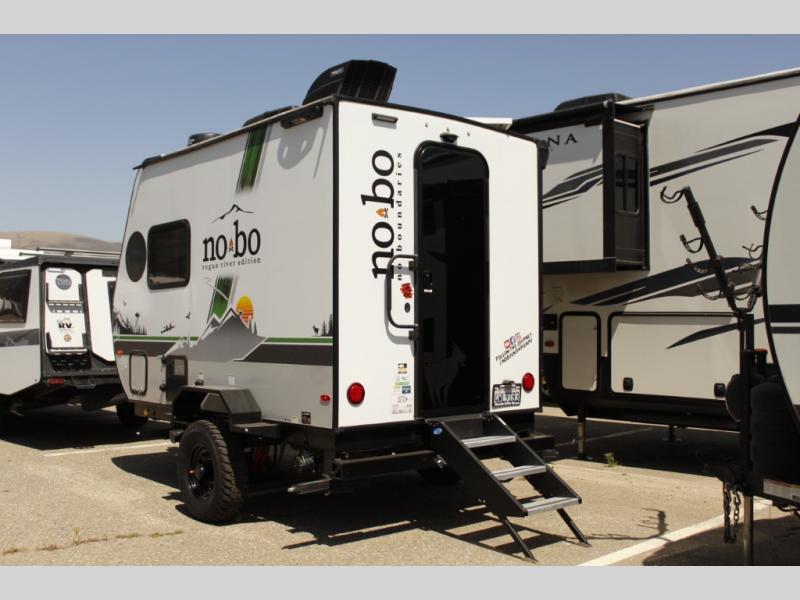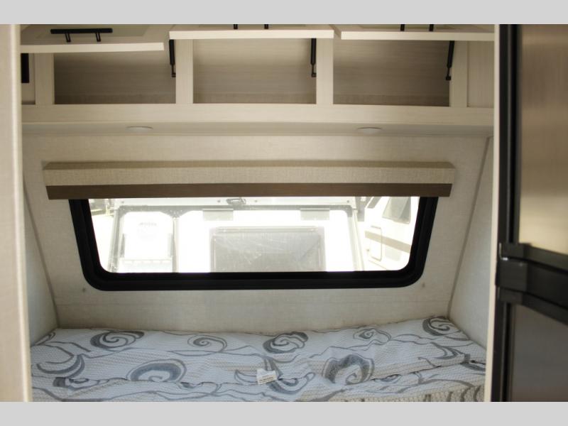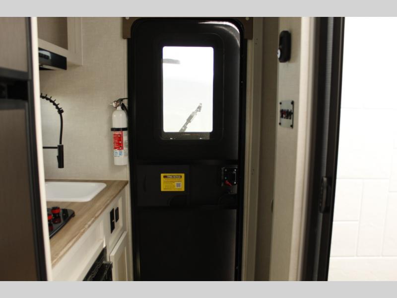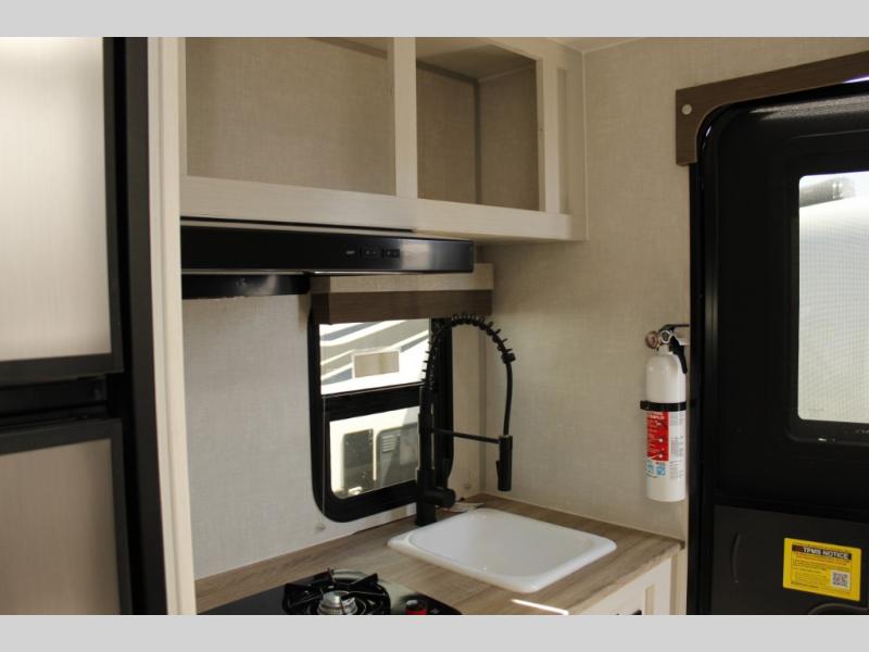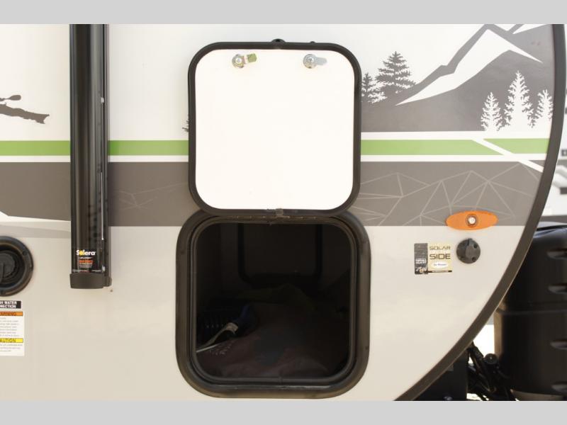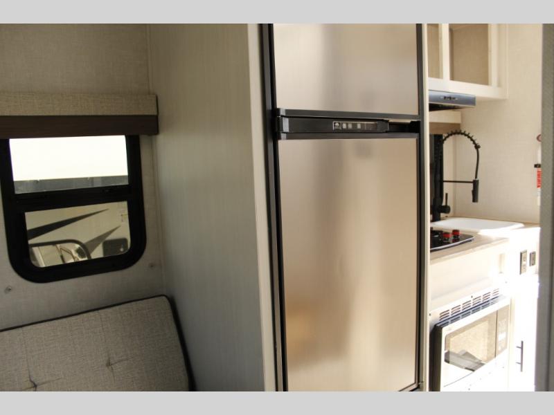This is the perfect couples unit that features everything that you need to enjoy traveling and exploring yet keeping your tow length and weight down. The unique rear entry makes this unit easy to access, and just inside the rear door there is a private toilet area for quick access when you are outside and you need the bathroom. A front queen bed that is 60" x 74" provides a great night's rest, and can easily convert to a booth dinette when needed for inside seating and meals. The two burner cooktop, sink, and refrigerator allow you to make easy camp meals inside if you'd like.