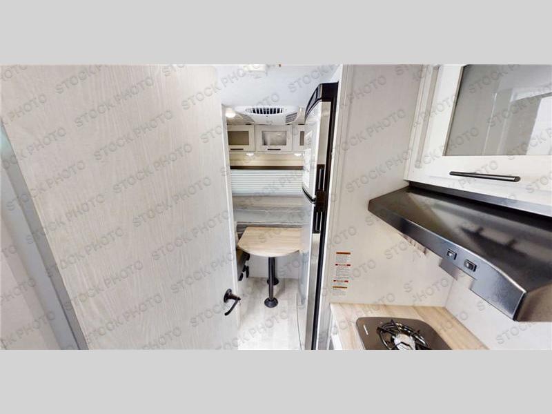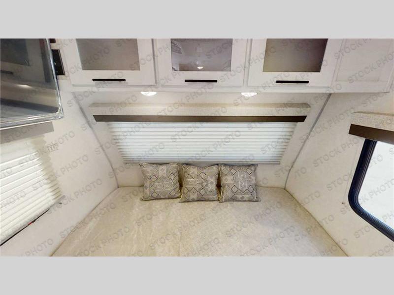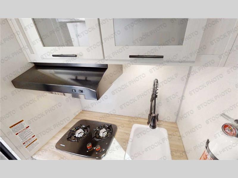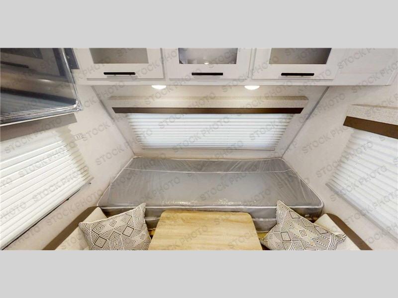 This is the perfect couples unit that features everything that you need to enjoy traveling and exploring yet keeping your tow length and weight down. The unique rear entry makes this unit easy to access, and just inside the rear door there is a private toilet area for quick access when you are outside and you need the bathroom. A front queen bed that is 60" x 74" provides a great night's rest, and can easily convert to a booth dinette when needed for inside seating and meals. The two burner cooktop, sink, and refrigerator allow you to make easy camp meals inside if you'd like.