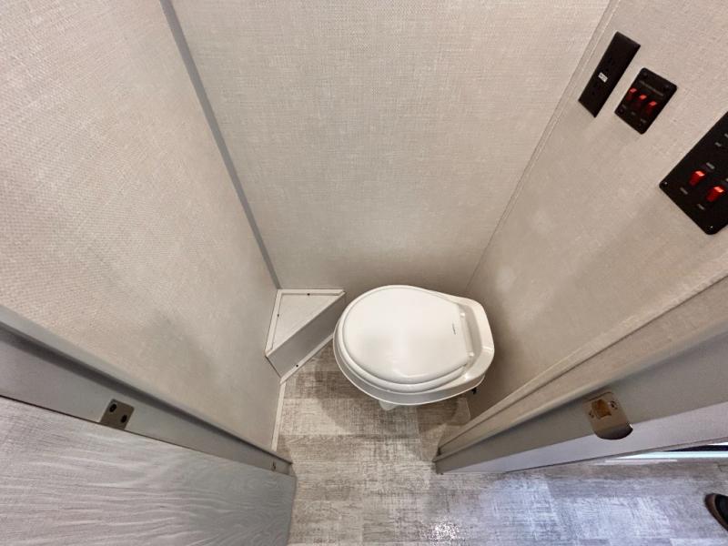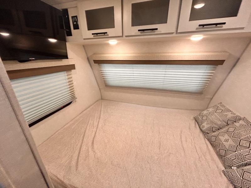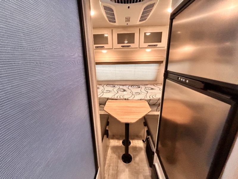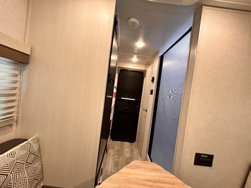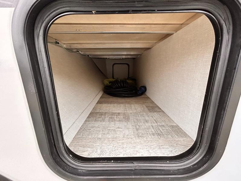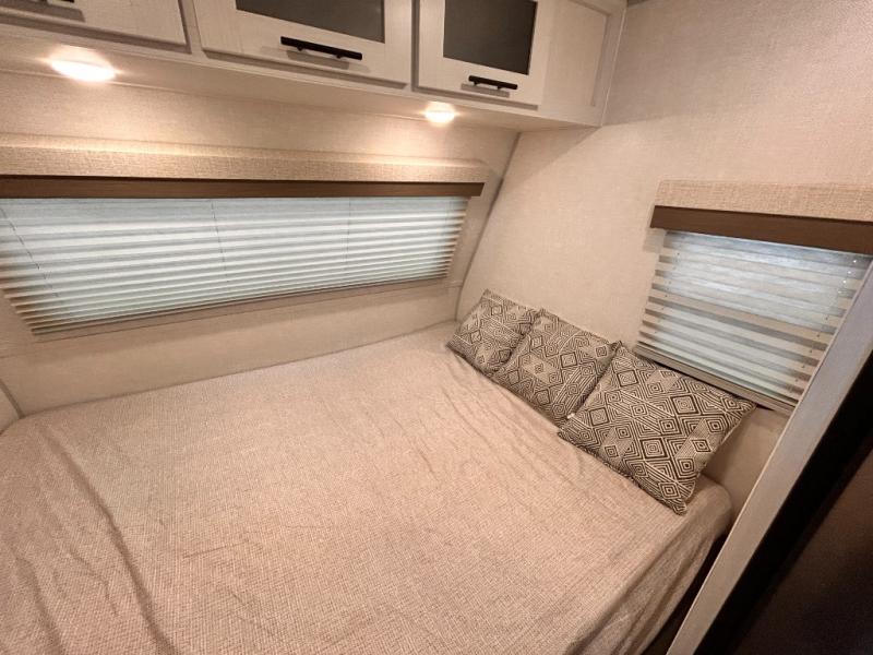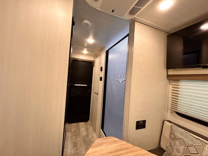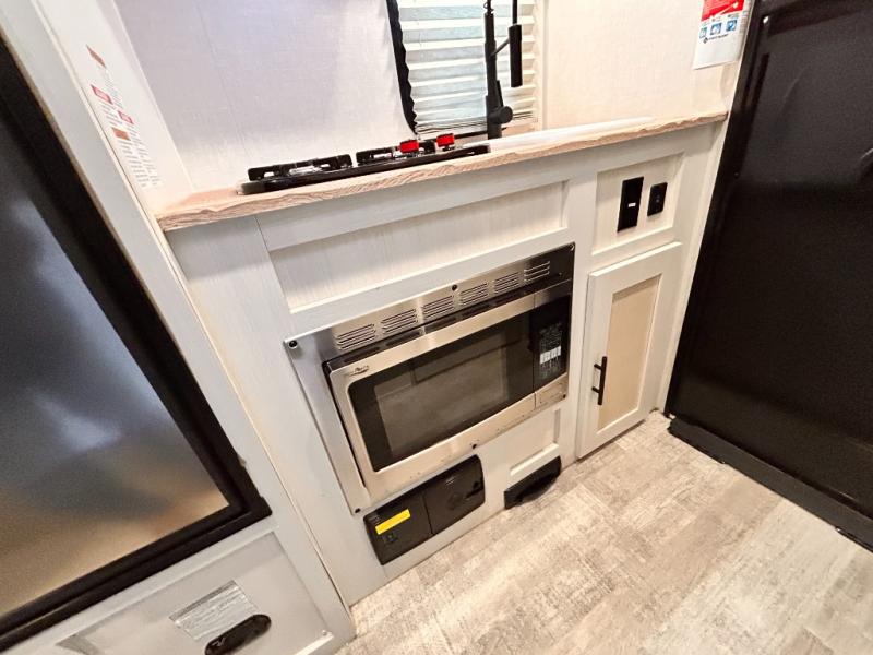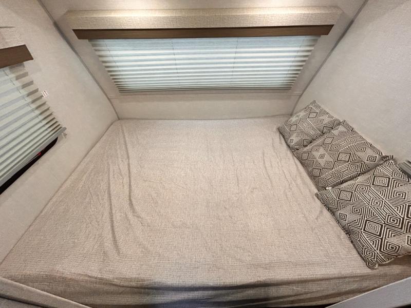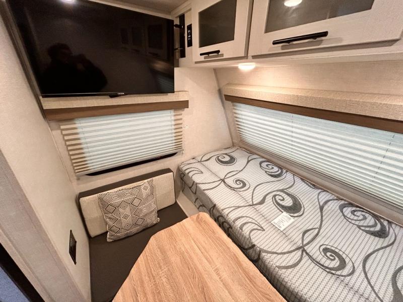 This is the perfect couples unit that features everything that you need to enjoy traveling and exploring yet keeping your tow length and weight down. The unique rear entry makes this unit easy to access, and just inside the rear door there is a private toilet area for quick access when you are outside and you need the bathroom. A front queen bed that is 60" x 74" provides a great night's rest, and can easily convert to a booth dinette when needed for inside seating and meals. The two burner cooktop, sink, and refrigerator allow you to make easy camp meals inside if you'd like.