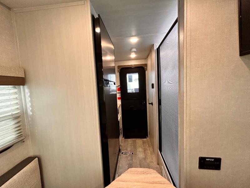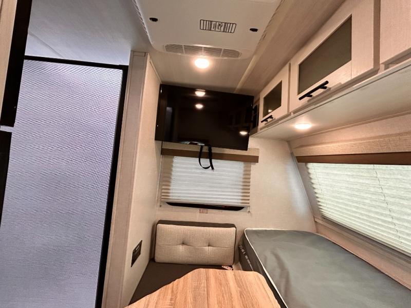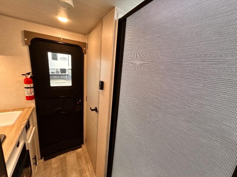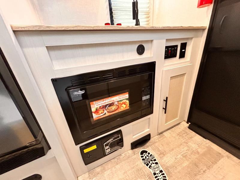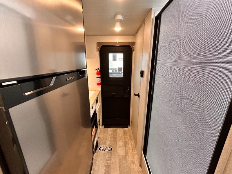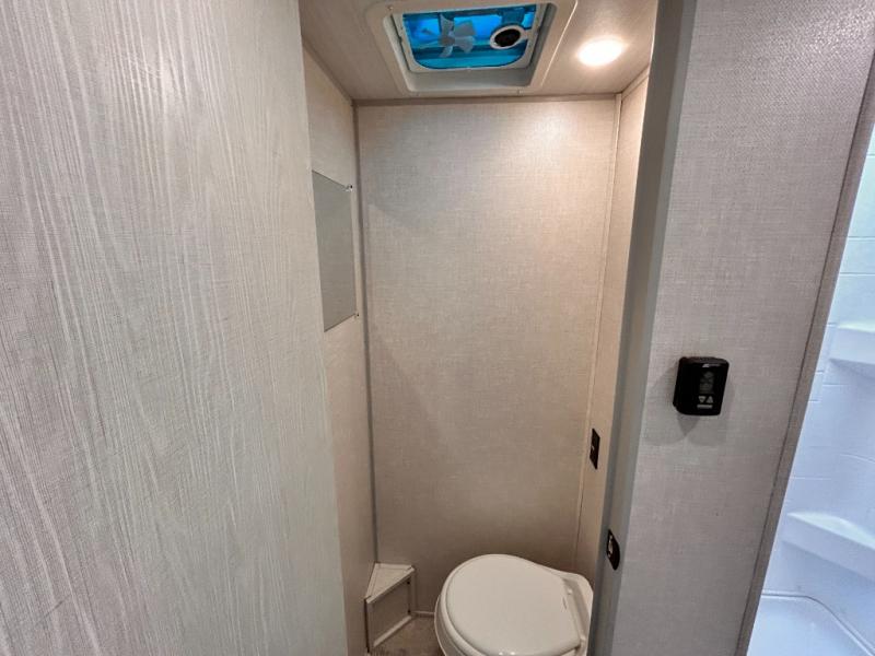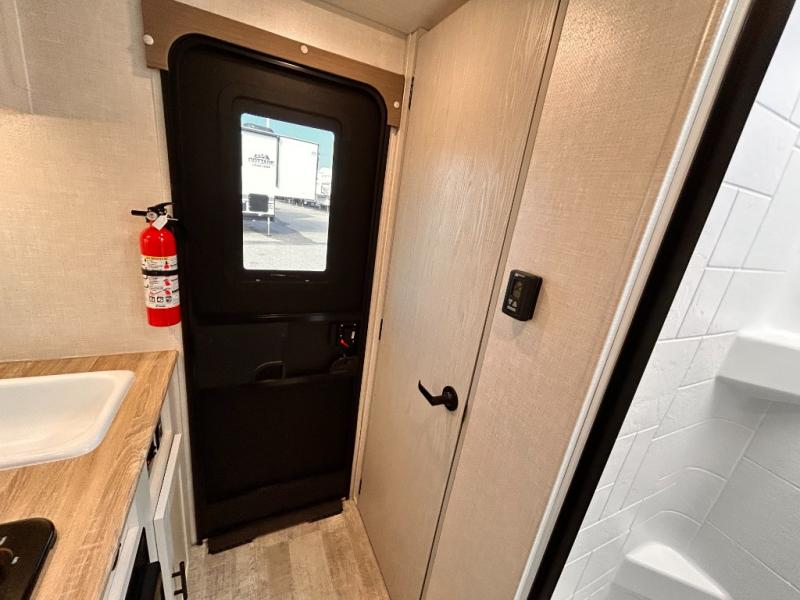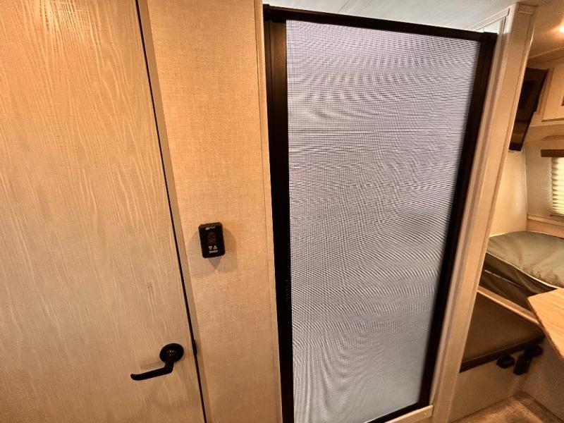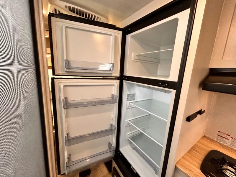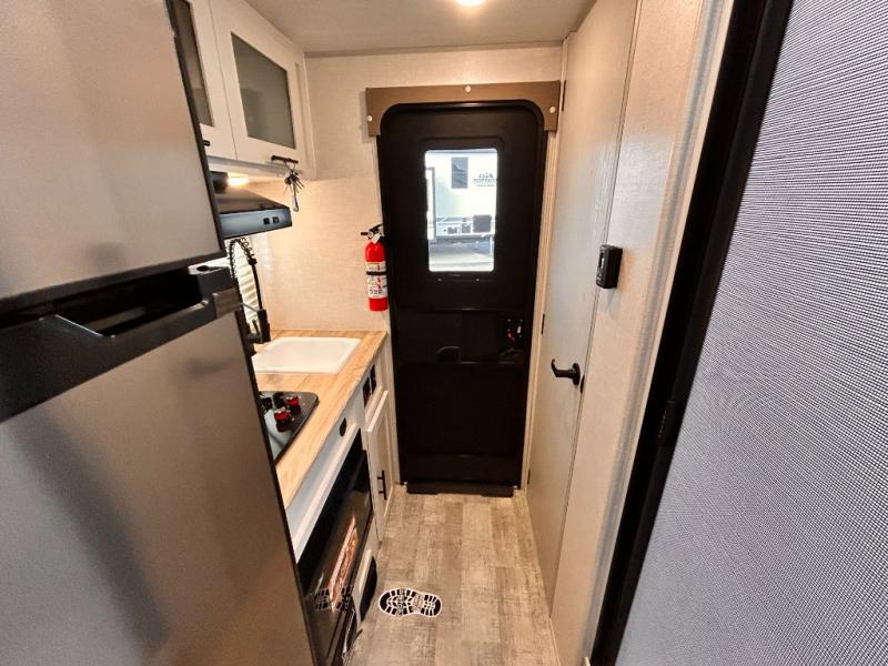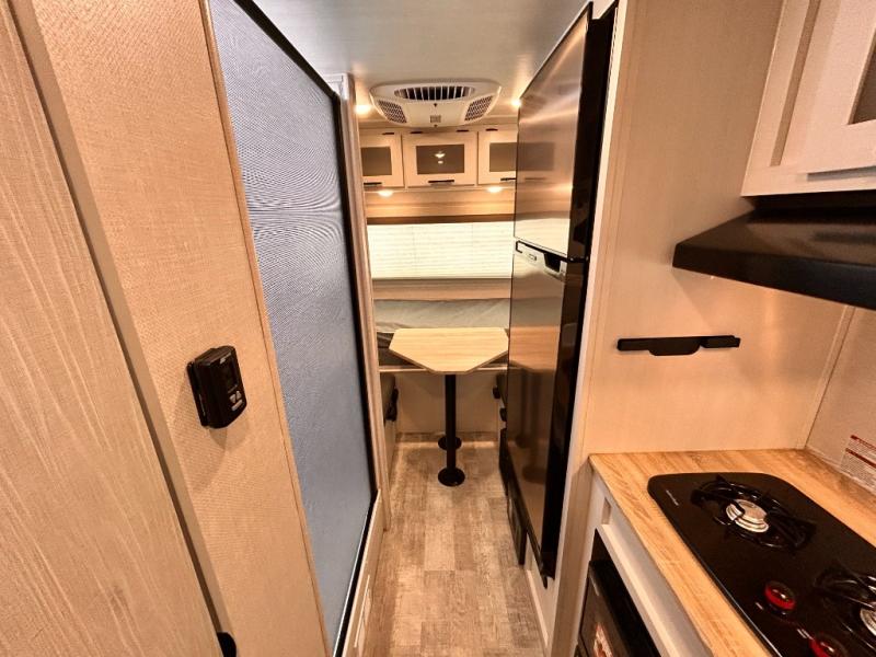 This is the perfect couples unit that features everything that you need to enjoy traveling and exploring yet keeping your tow length and weight down. The unique rear entry makes this unit easy to access, and just inside the rear door there is a private toilet area for quick access when you are outside and you need the bathroom. A front queen bed that is 60" x 74" provides a great night's rest, and can easily convert to a booth dinette when needed for inside seating and meals. The two burner cooktop, sink, and refrigerator allow you to make easy camp meals inside if you'd like.