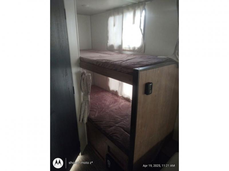 This No Boundaries travel trailer will make your life easier with its bunk beds, chaise dinette, and queen-size bed. Now you can bring along your favorite people without worrying where they will sleep at night. The single slide gives you more space for staying inside and spending time together, and there is an entertainment center that you can use while you're in there. This trailer also has great storage with the bathroom closet, kitchen refrigerator, and overhead cabinets. You'll also have a 14' power awning that will protect you while you're outside enjoying the weather. Add the optional Unplugged package to take your camping experience to a whole new level.
