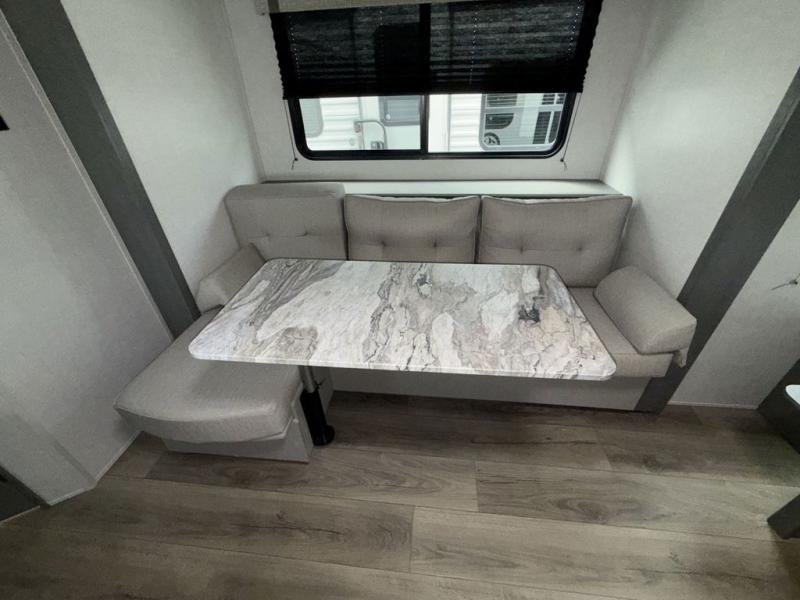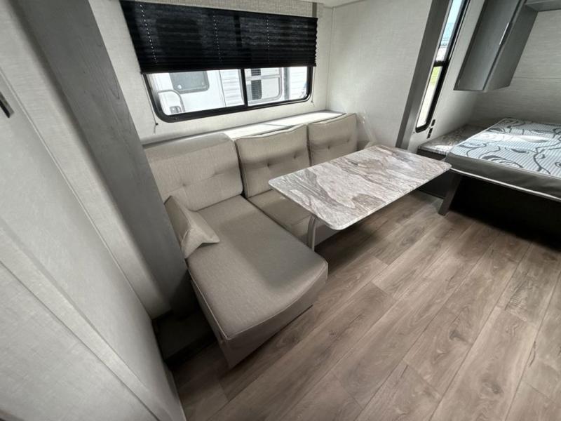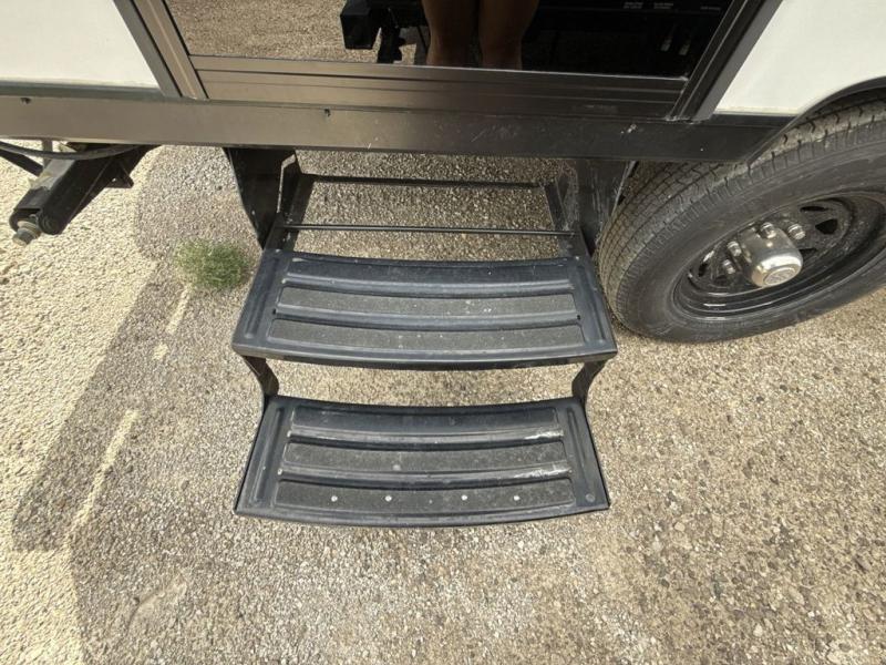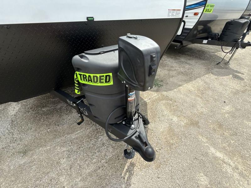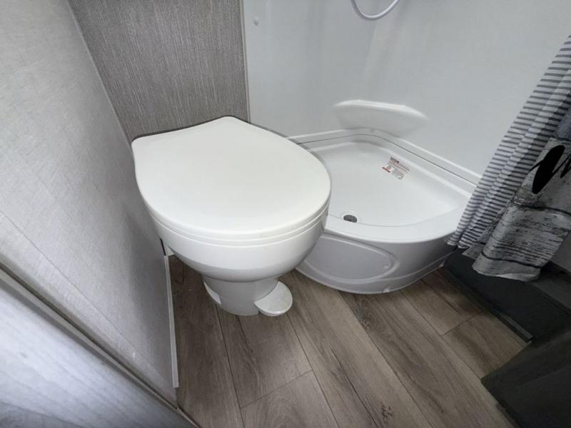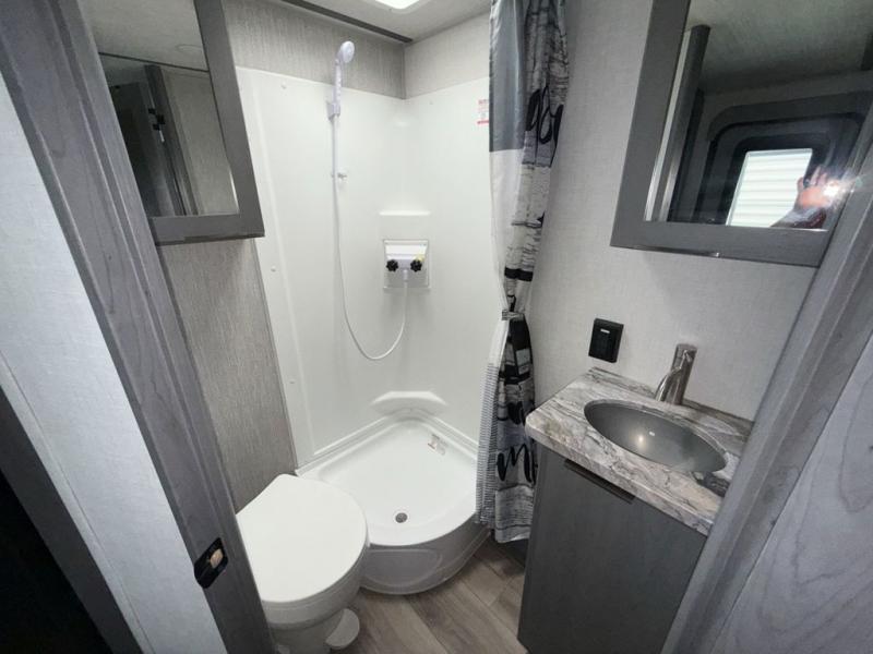 Start camping in this well-equipped travel trailer! The compact kitchen has everything you need to prepare your best home cooked meals and you can enjoy them at the convertible chaise lounge with a folding sofa and a table. Freshen up each morning in the rear corner bathroom with the corner shower and rest each night on the front queen bed with wardrobes on either side and overhead storage. Rinse the mud off your feet with the exterior hot/cold shower to be sure you do not track it all throughout the inside. Don't leave any of your outdoor gear behind; simply store it in the exterior full pass-through storage area!
