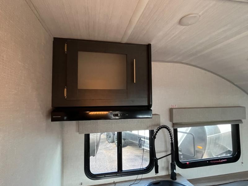 With any R Pod Classic travel trailer by Forest River, you will enjoy at home-comforts and lightweight towing. There are magnetic door catches that will easily keep the door open when you're packing hiking gear or bringing in your luggage. Each model includes 30 Amp service with a detachable power cord, a 20 lb. propane tank with a cover, and a high efficiency roof-mounted air conditioner that will keep you cool during the summer camping months. Inside, you'll find a two burner recessed cooktop with a flush mount glass cover, a convection microwave, and new Cosmetic Graphite interior for a modern look you will love.