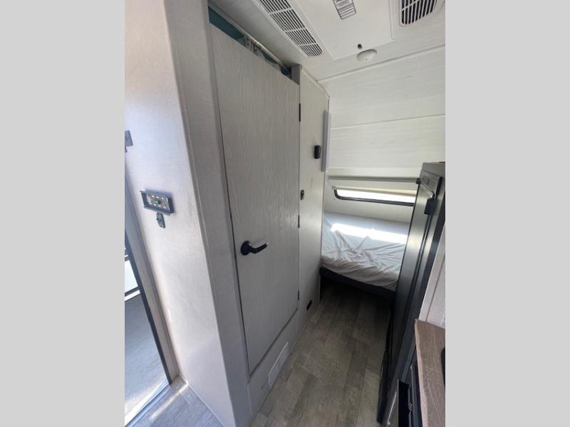 This R Pod travel trailer by Forest River is perfect for weekend trips or month-long vacations to enjoy the great outdoors with conveniences of home. You can easily sleep three people with a rear RV queen bed and a front dinette folded down for the little ones. This unit also includes a two-burner cooktop and convection microwave to make meals inside. You will also find a convenient wet bath where you can easily get ready for bed each night.