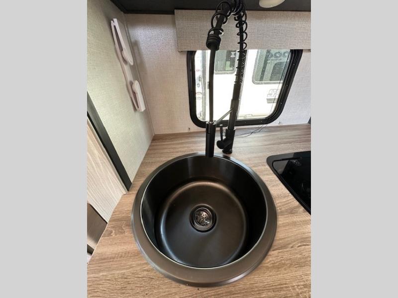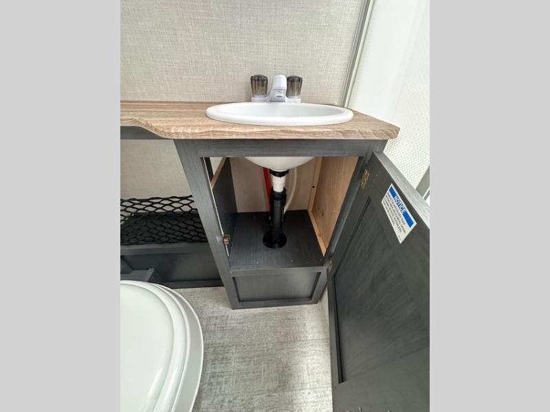 With any R Pod Classic travel trailer by Forest River, you will enjoy at home-comforts and lightweight towing. There are magnetic door catches that will easily keep the door open when you're packing hiking gear or bringing in your luggage. Each model includes 30 Amp service with a detachable power cord, a 20 lb. propane tank with a cover, and a high efficiency roof-mounted air conditioner that will keep you cool during the summer camping months. Inside, you'll find a two burner recessed cooktop with a flush mount glass cover, a convection microwave, and new Cosmetic Graphite interior for a modern look you will love.