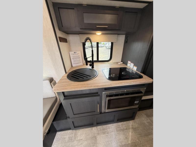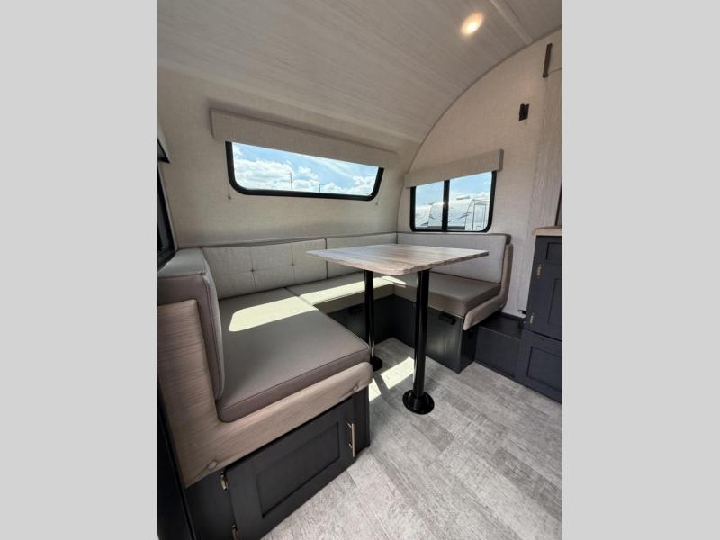 For the couple who is ready to camp anytime and anywhere, you will love how easy it is to camp with this R-Pod travel trailer. This unit features a single slide giving you room to move about. Within this slide, you will find the kitchen amenities which include a two-burner cooktop and a gas/electric refrigerator. You can enjoy your meals at the U-shaped dinette, and this can double as a sleeping space, if needed. Along the front of this model is an RV queen bed where you can rest up for another day of fun and adventure, and with all of the exterior storage, you can easily bring along all of your necessary camping items and more!